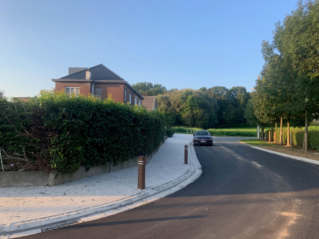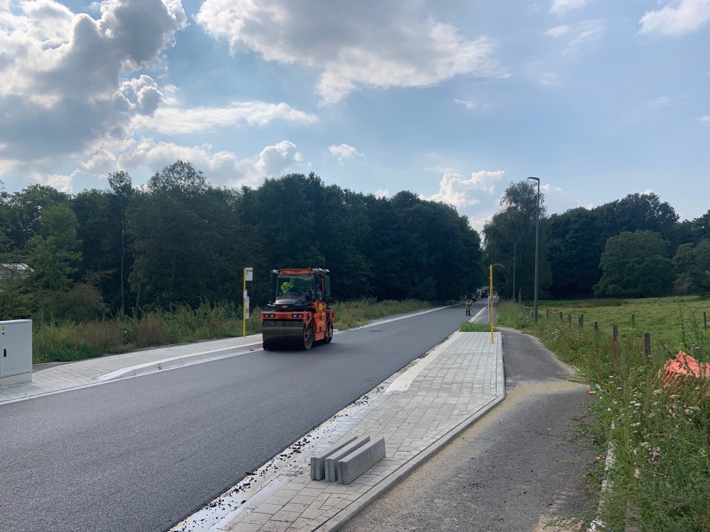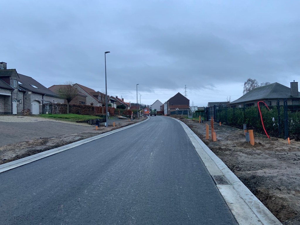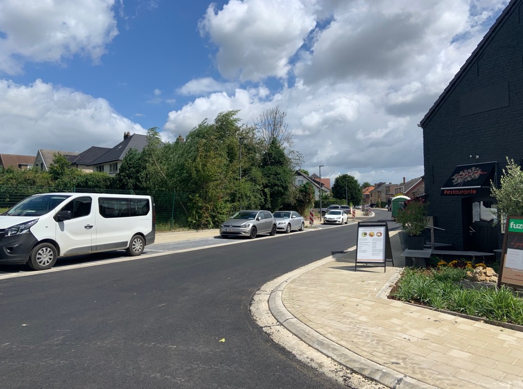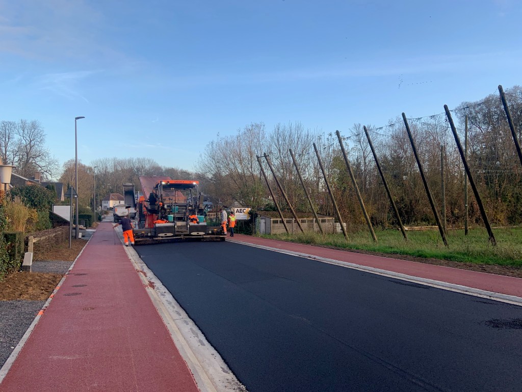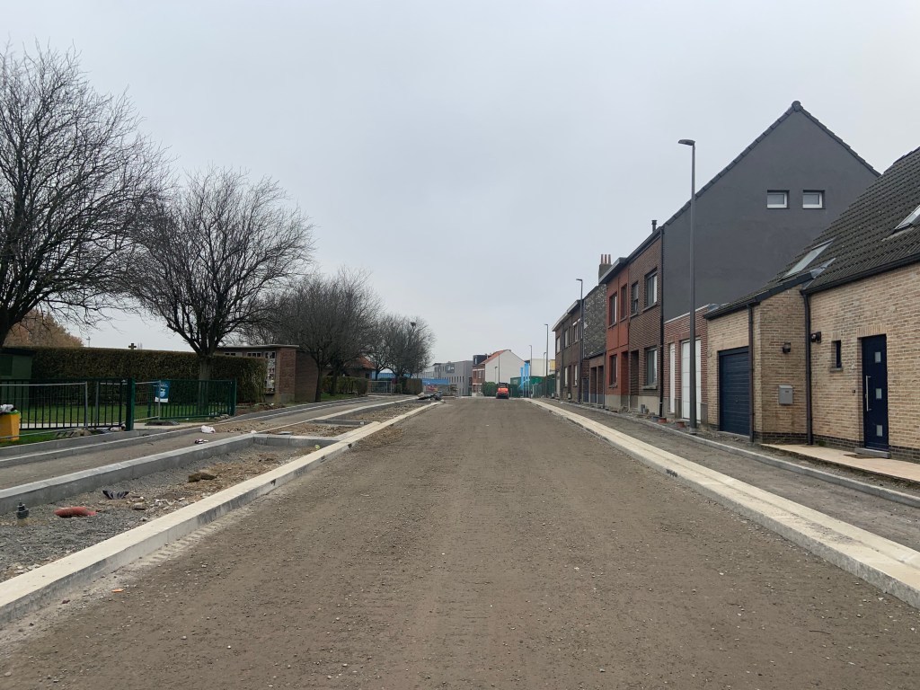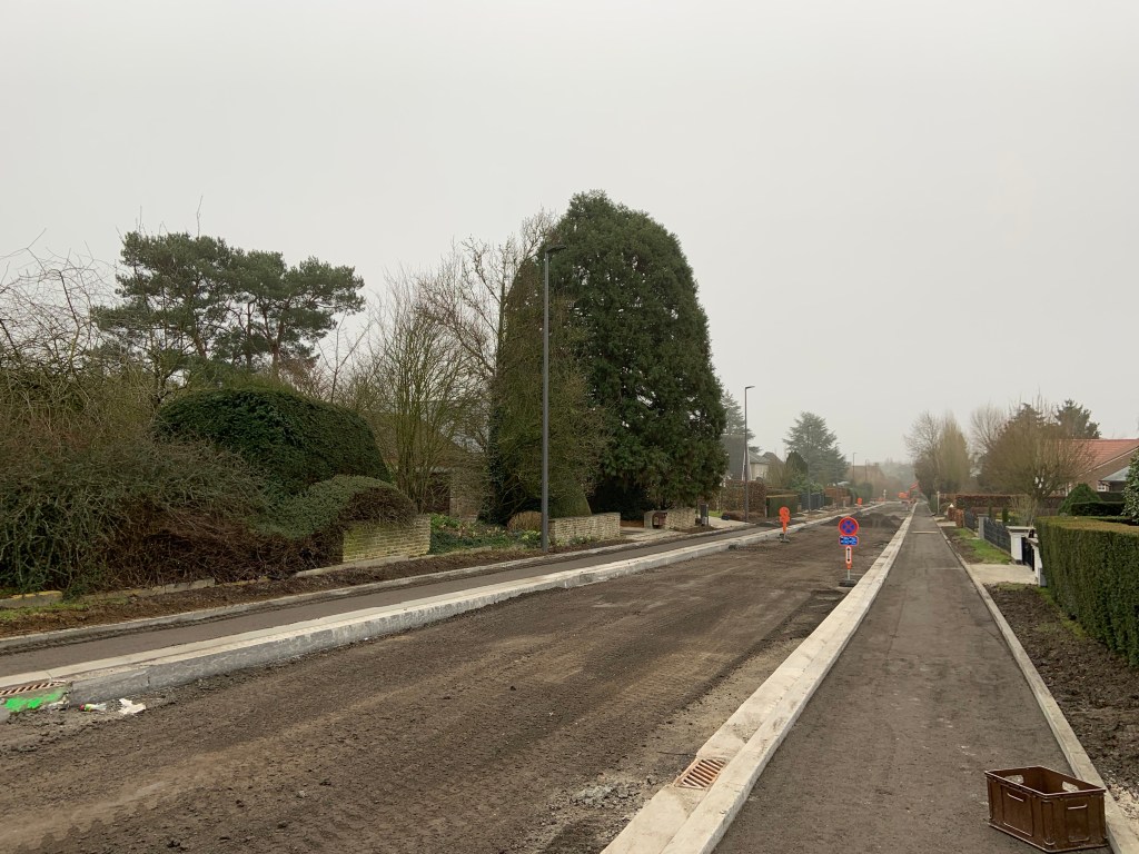 De Ternatstraat in Bodegem werd volledig vernieuwd: nieuwe stevige fundering, nieuwe rioleringen, 3 lagen asfalt, fietspaden, verhoogde busperrons,…