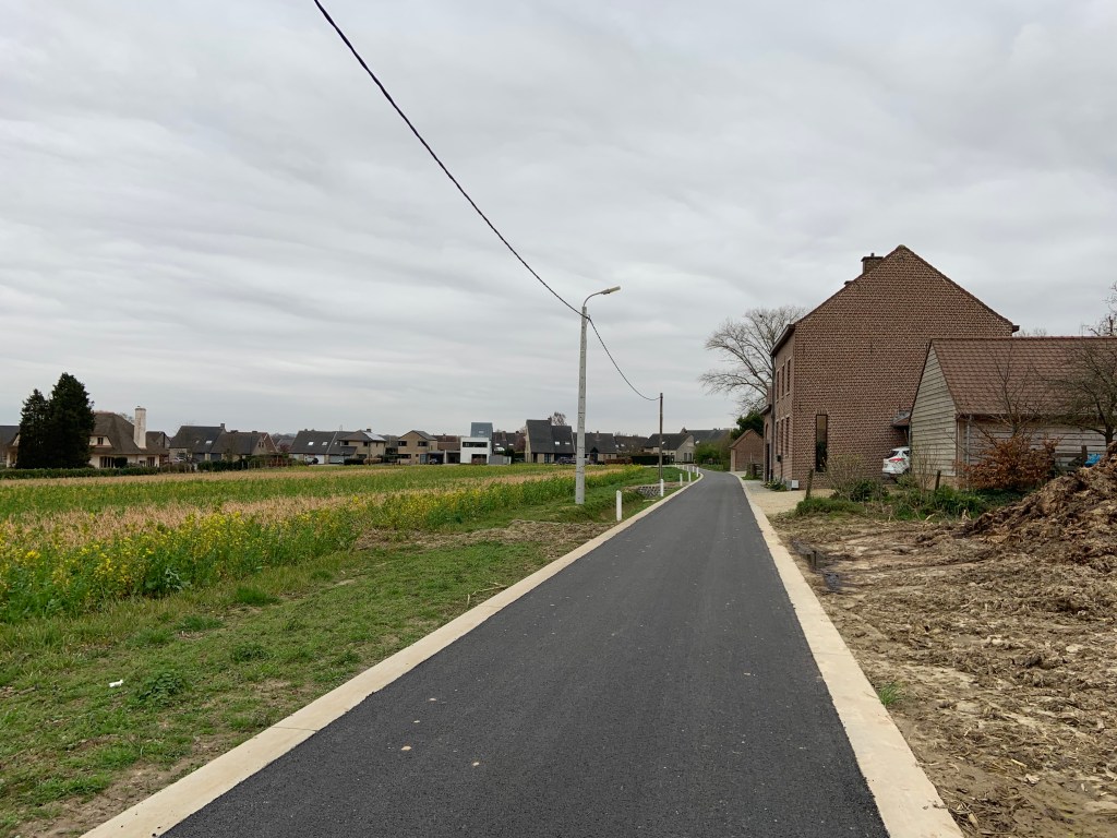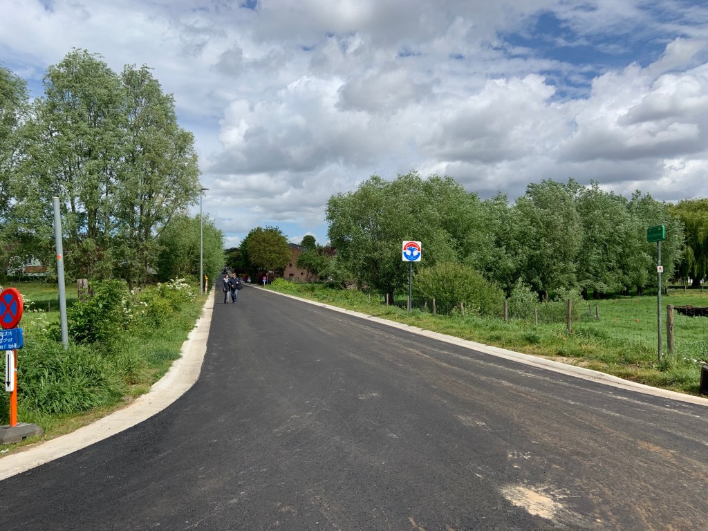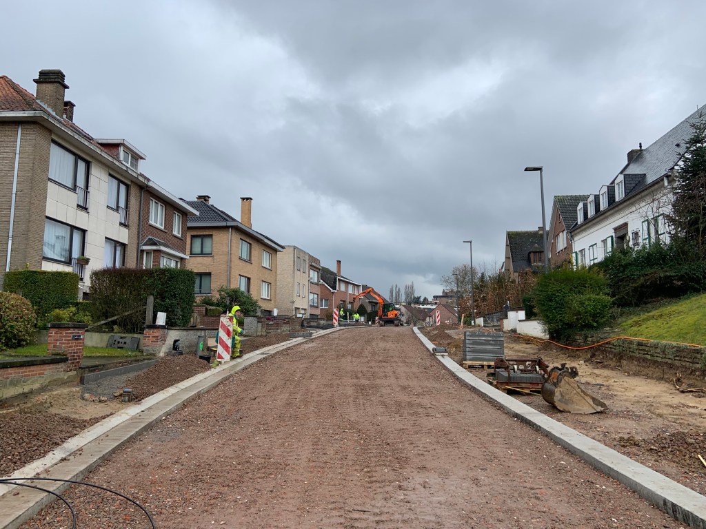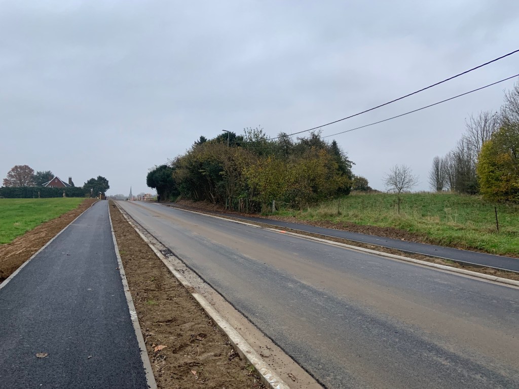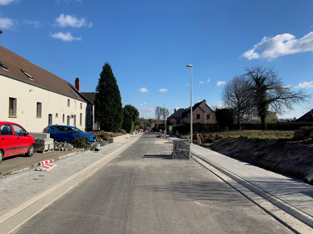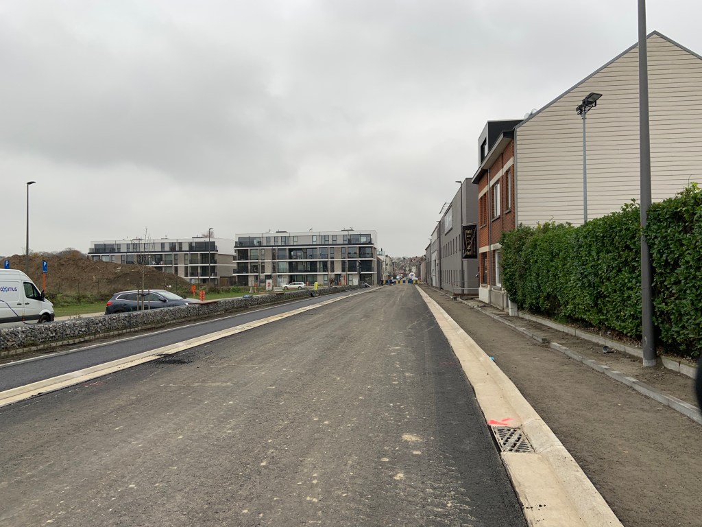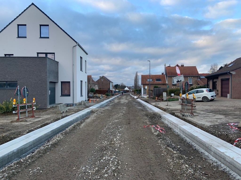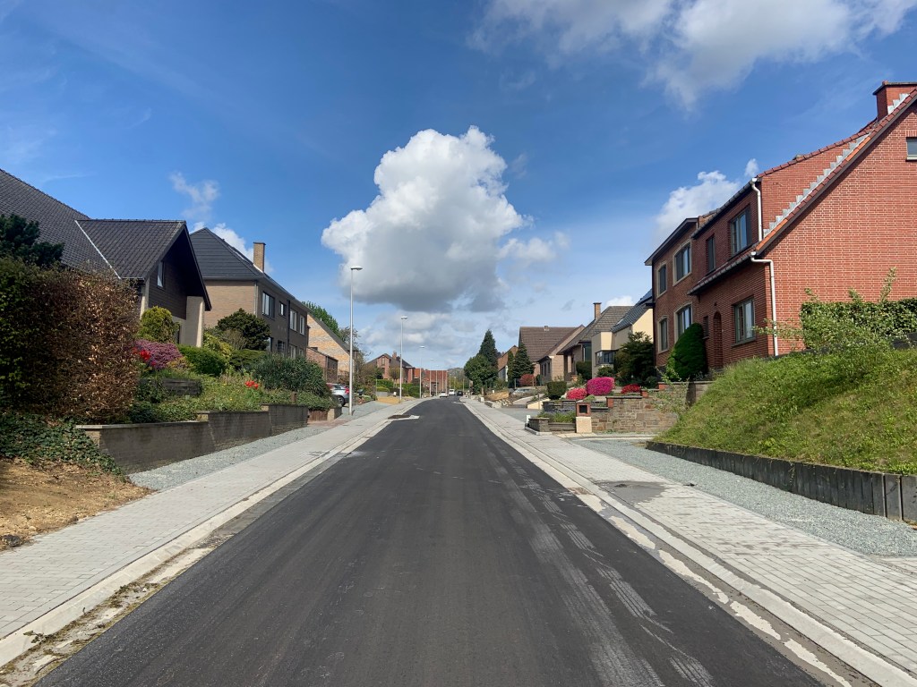 De Ternatstraat in Bodegem werd volledig vernieuwd: nieuwe stevige fundering, nieuwe rioleringen, 3 lagen asfalt, fietspaden, verhoogde busperrons,…