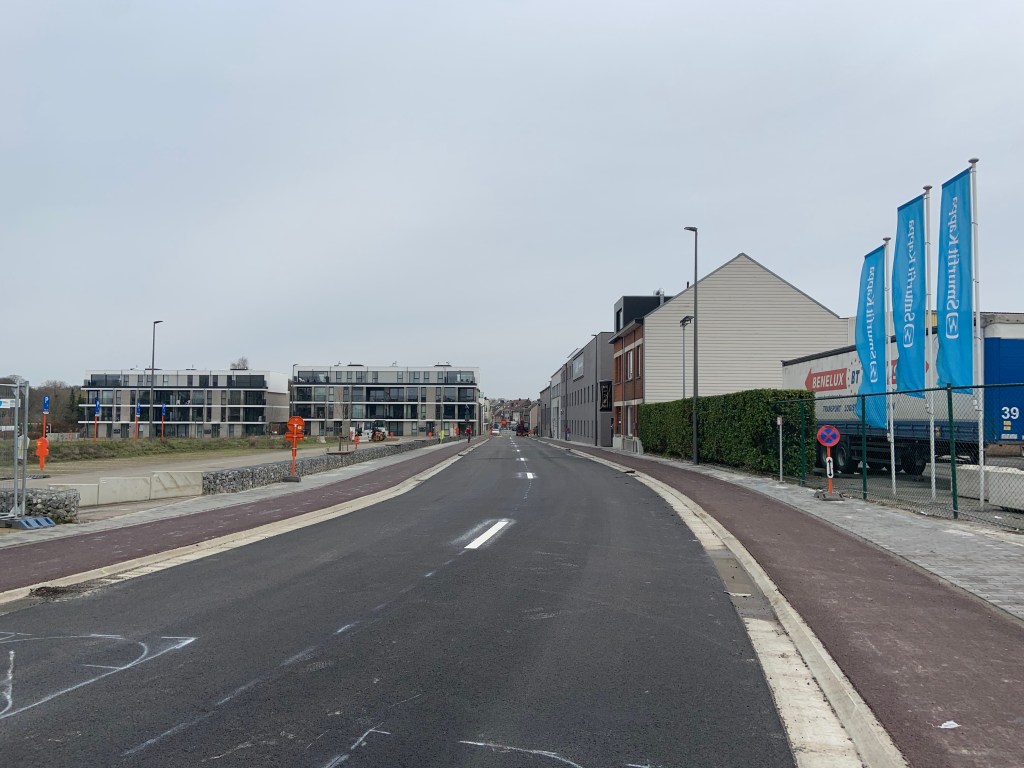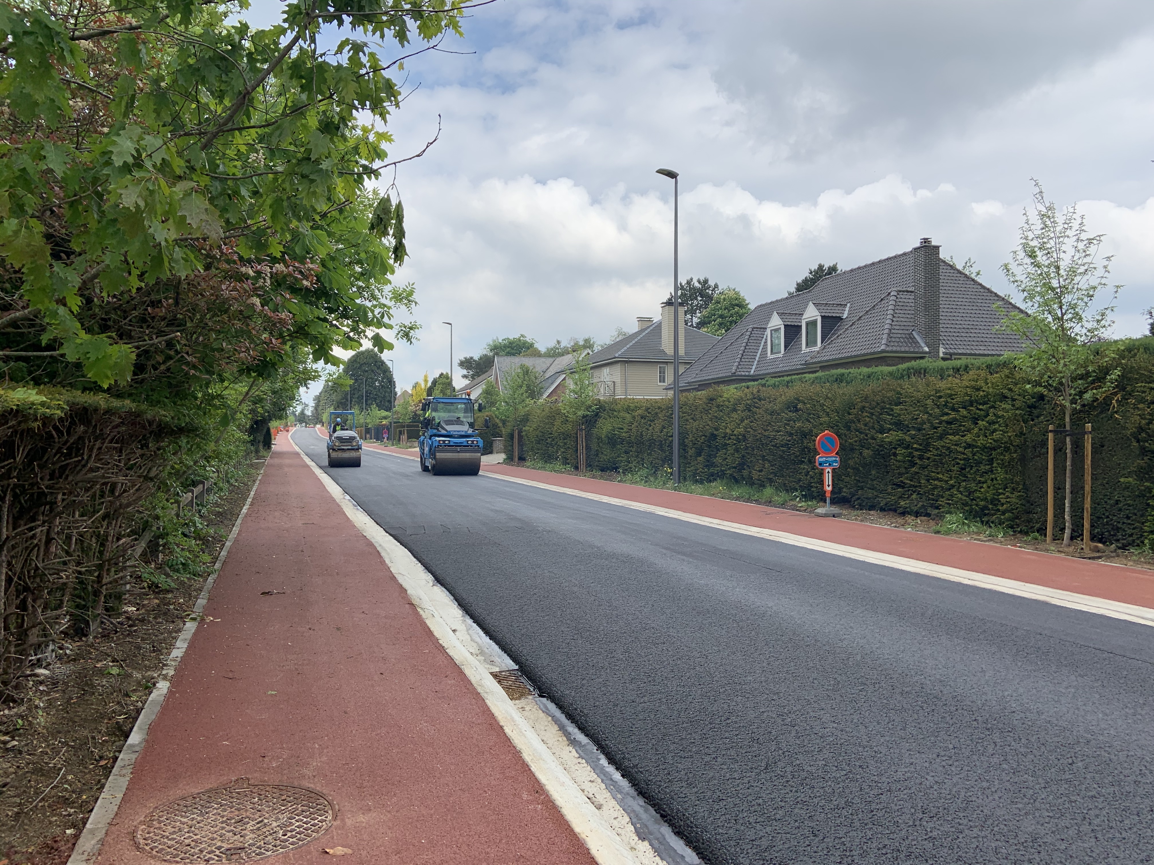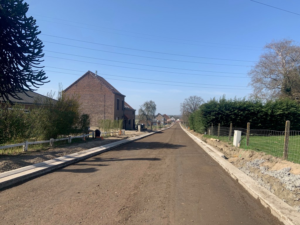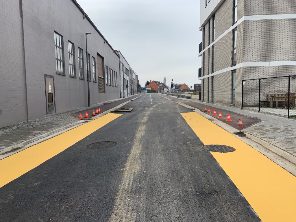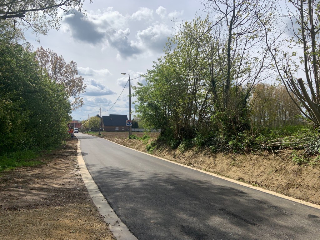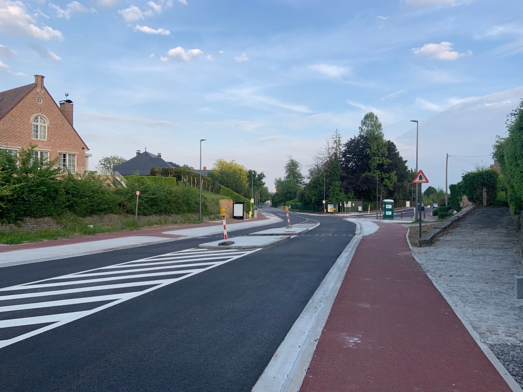 De Ternatstraat in Bodegem werd volledig vernieuwd: nieuwe stevige fundering, nieuwe rioleringen, 3 lagen asfalt, fietspaden, verhoogde busperrons,…