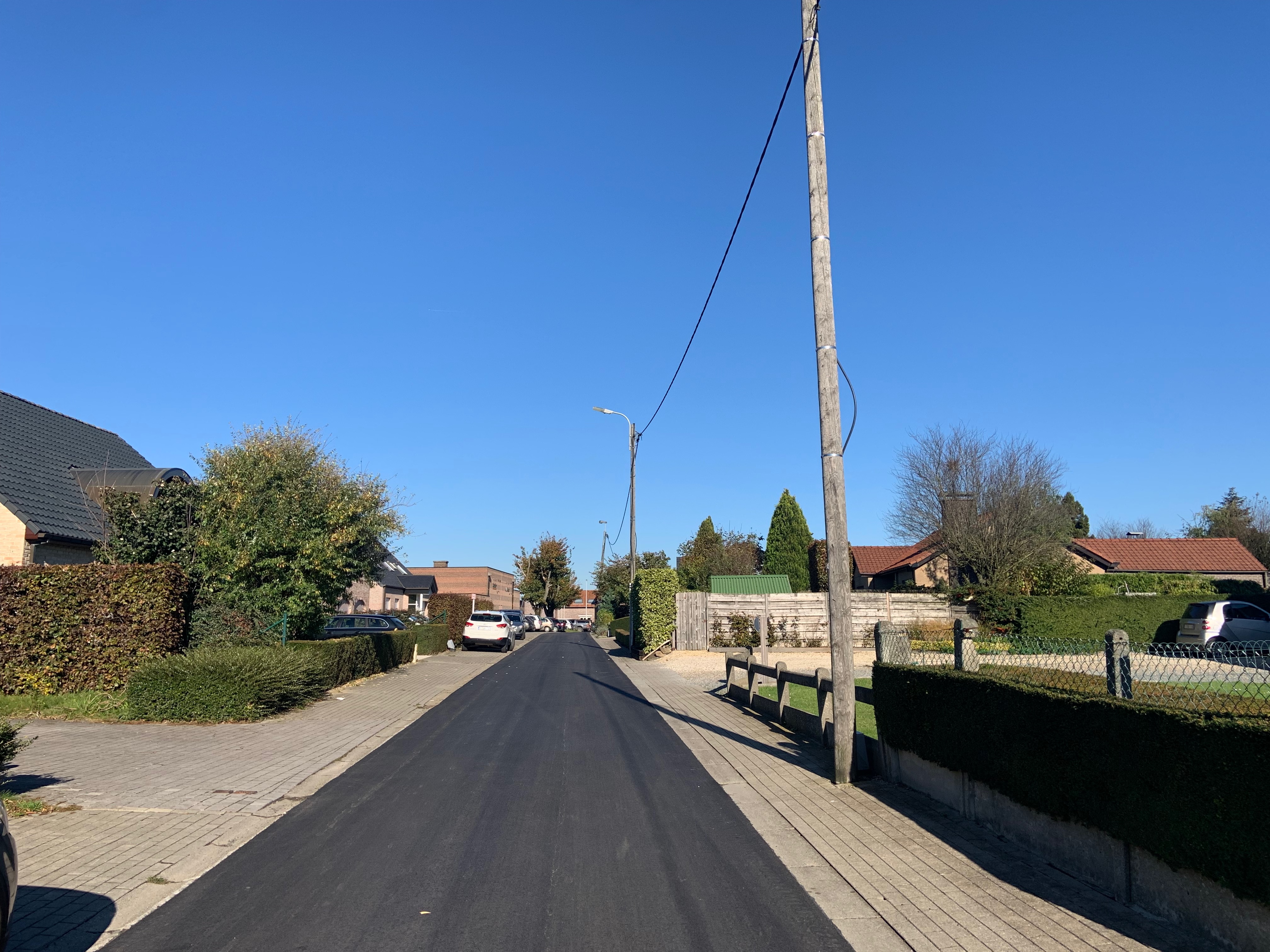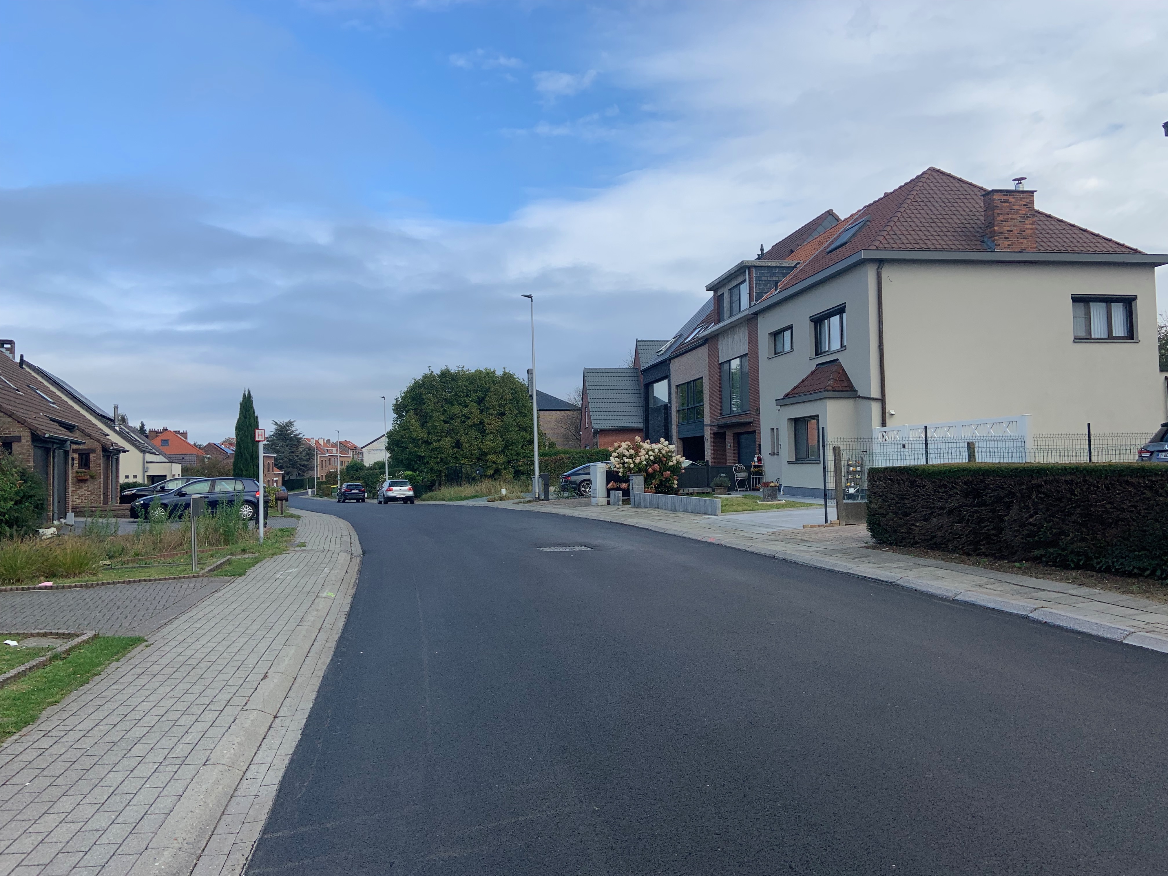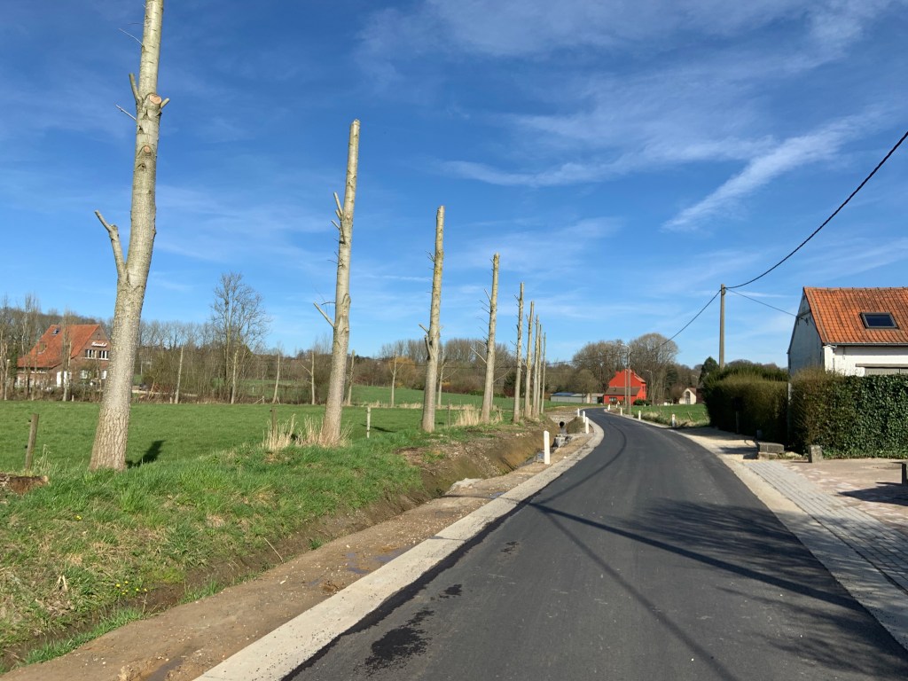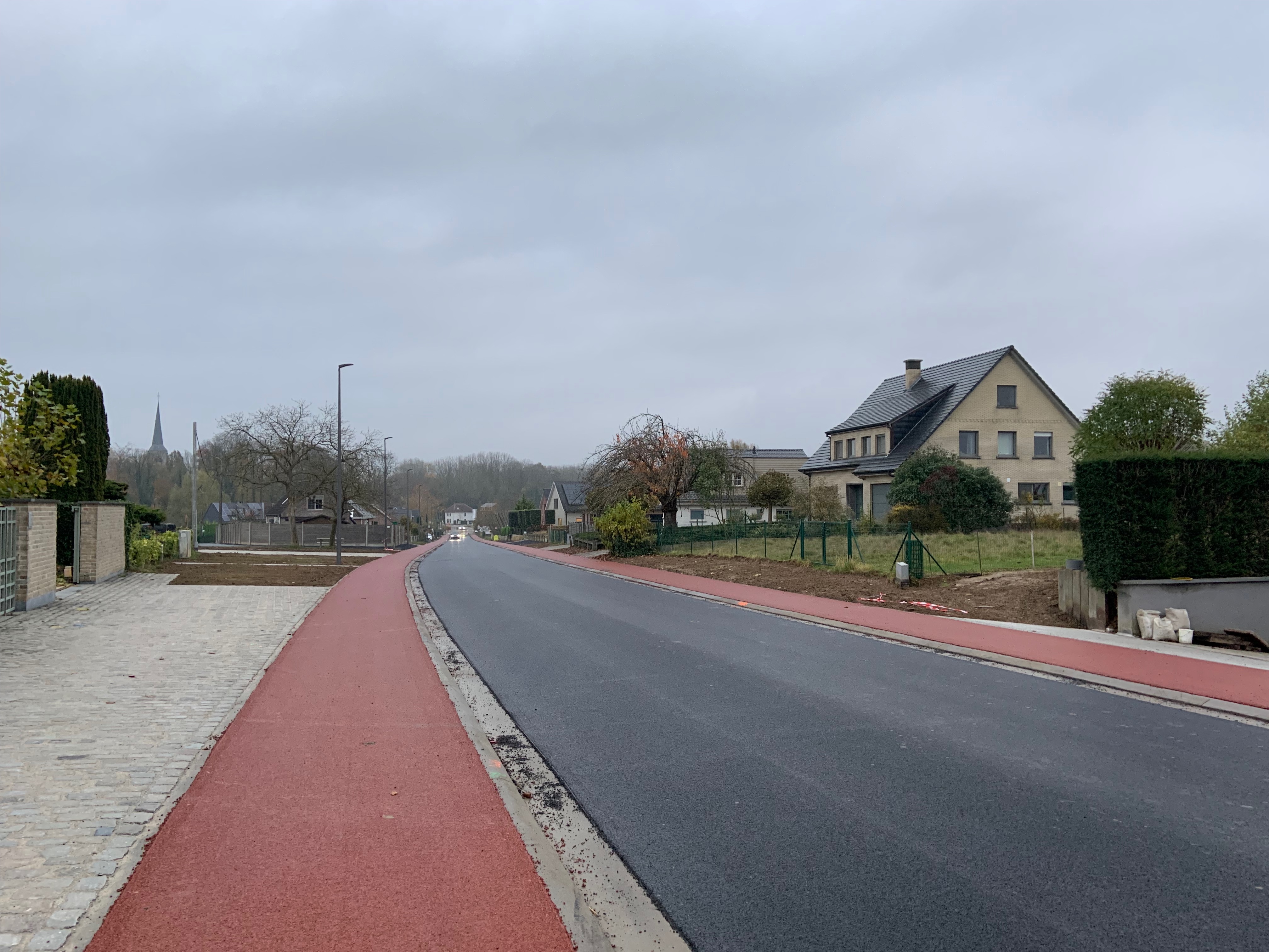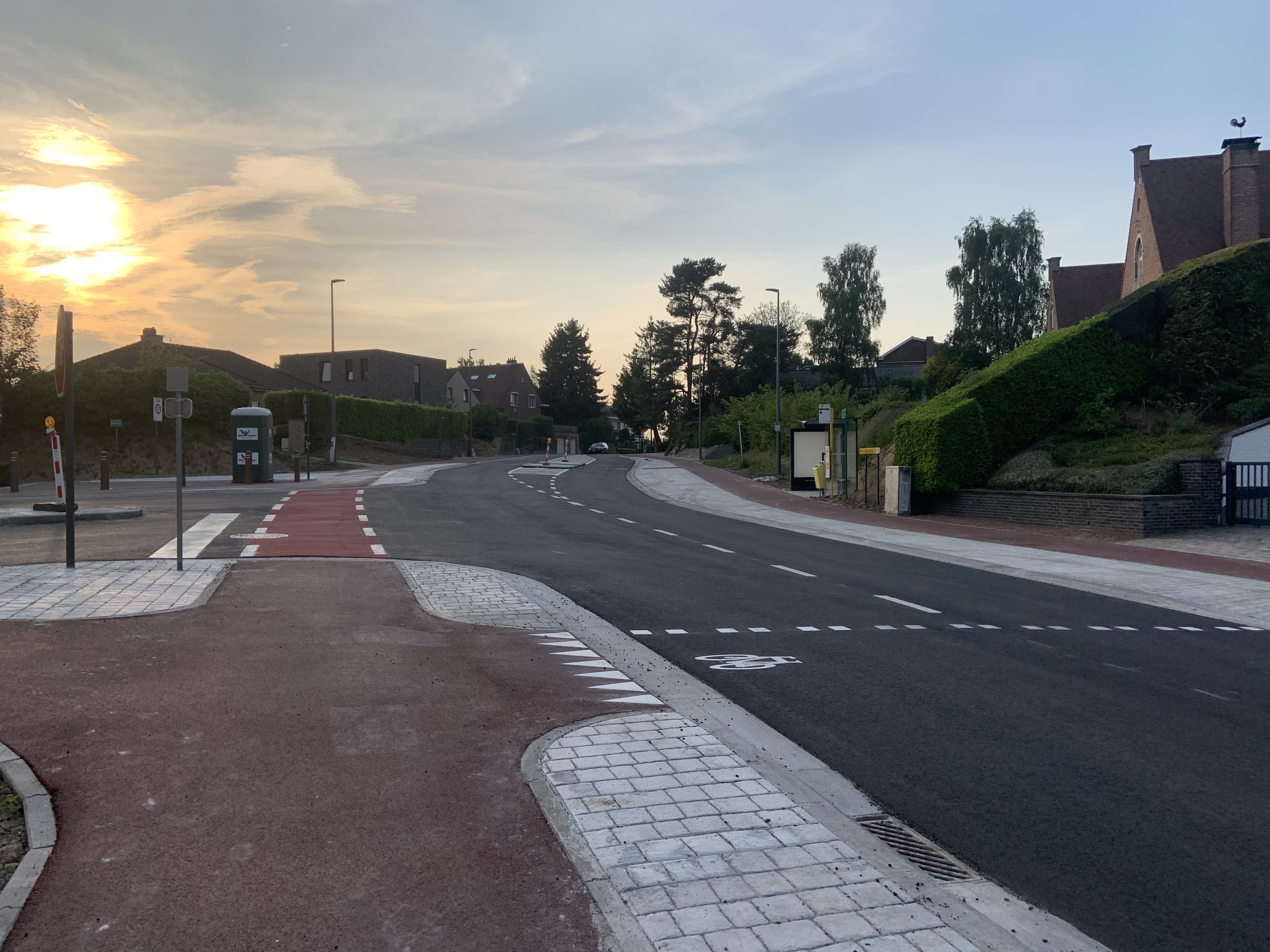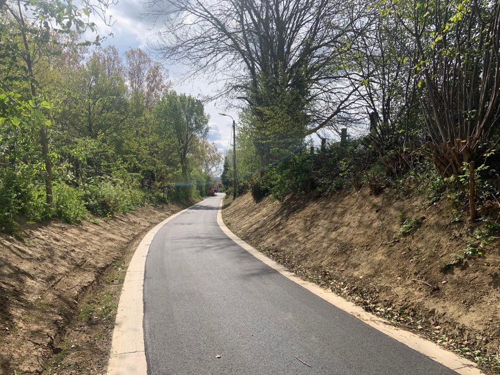 De Ternatstraat in Bodegem werd volledig vernieuwd: nieuwe stevige fundering, nieuwe rioleringen, 3 lagen asfalt, fietspaden, verhoogde busperrons,…
