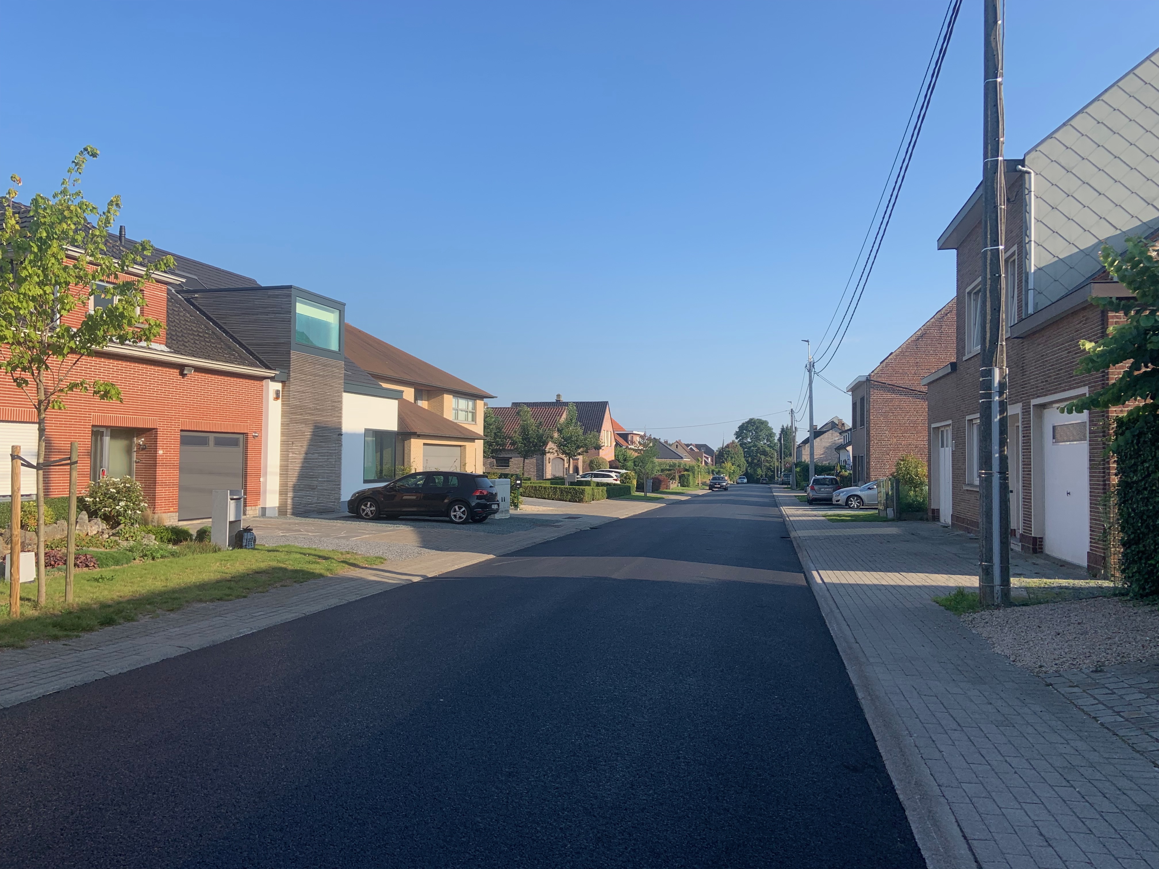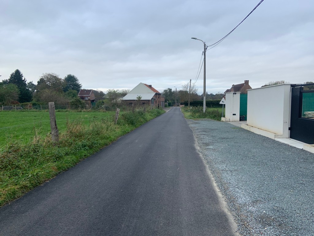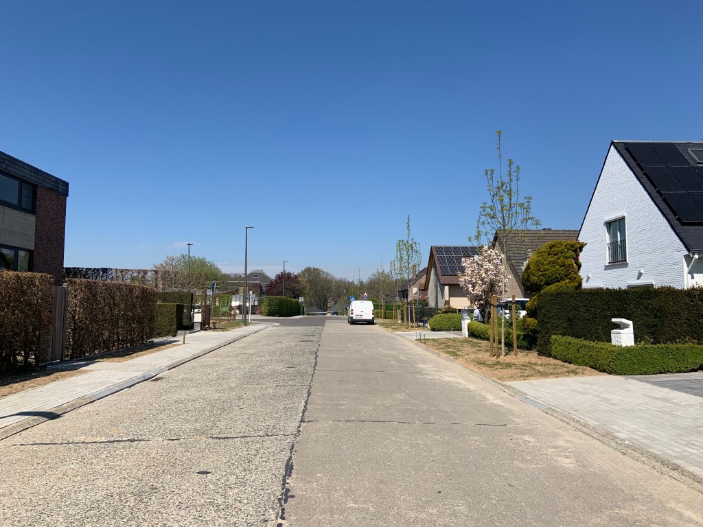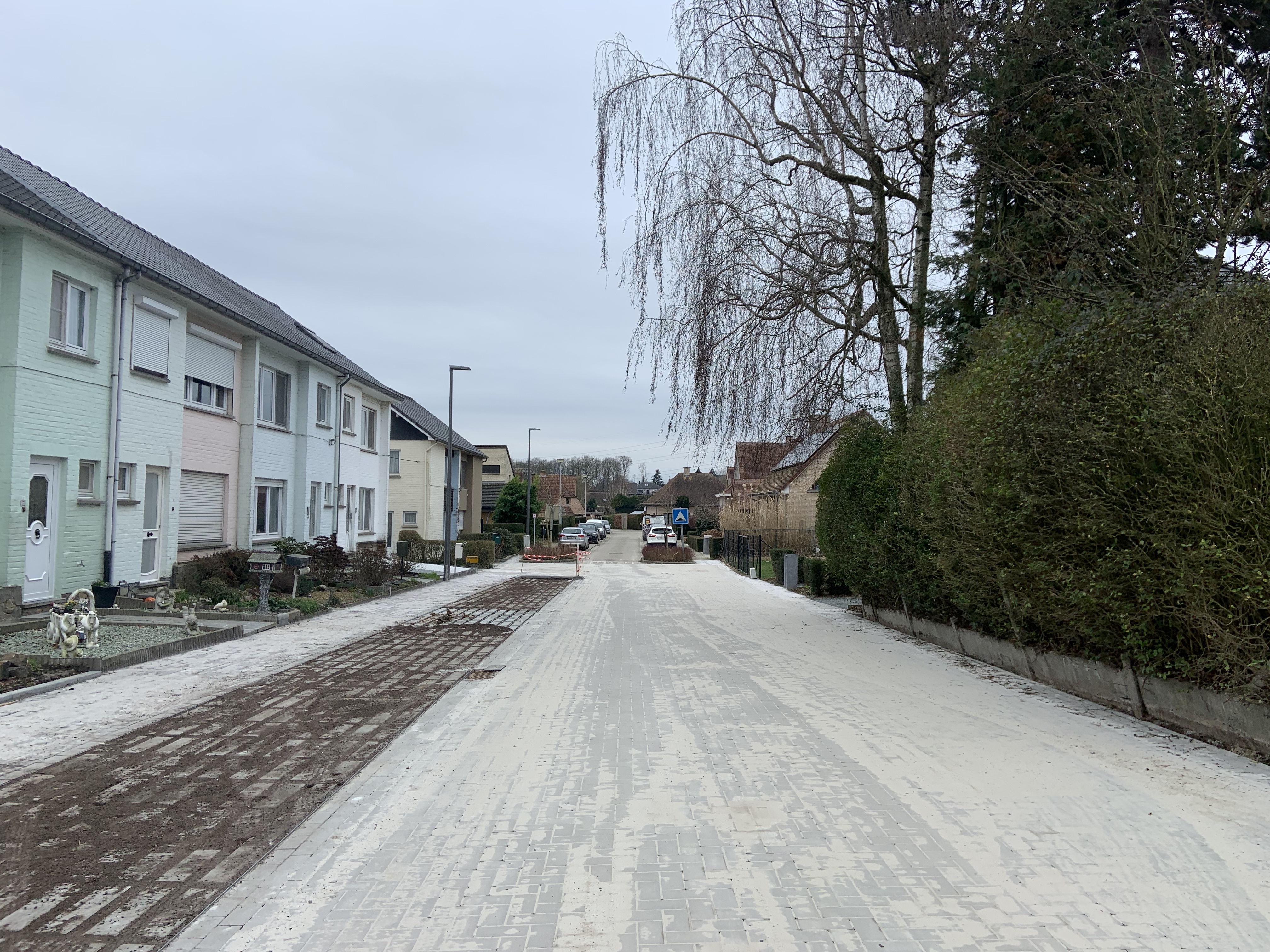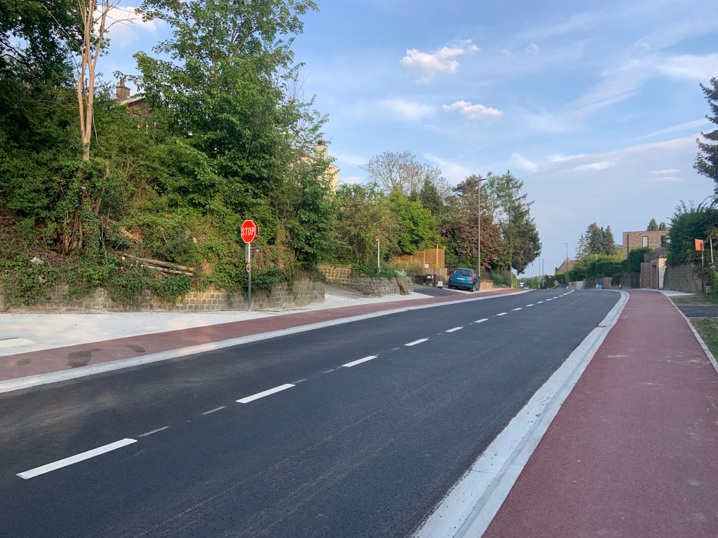 De Ternatstraat in Bodegem werd volledig vernieuwd: nieuwe stevige fundering, nieuwe rioleringen, 3 lagen asfalt, fietspaden, verhoogde busperrons,…