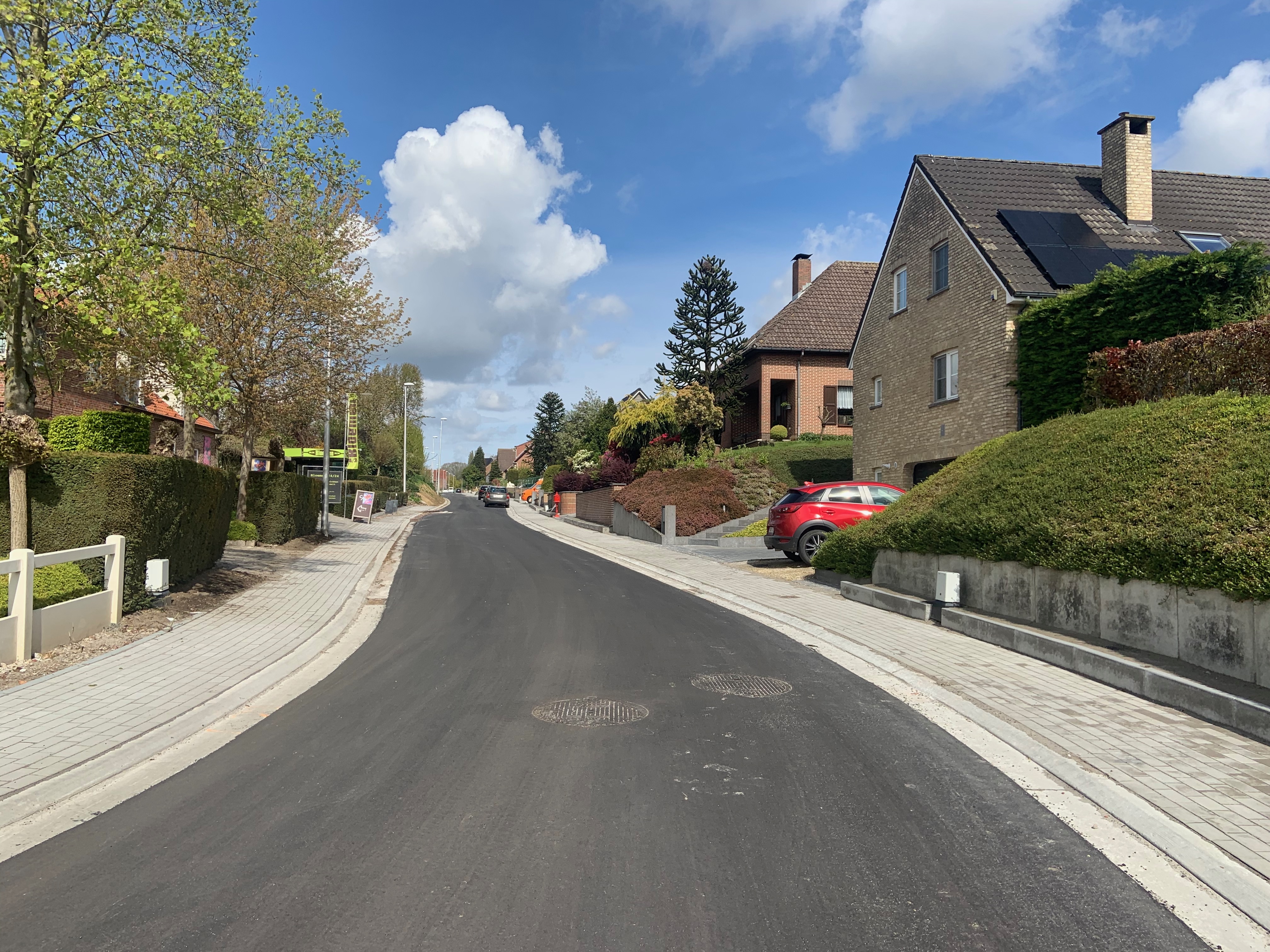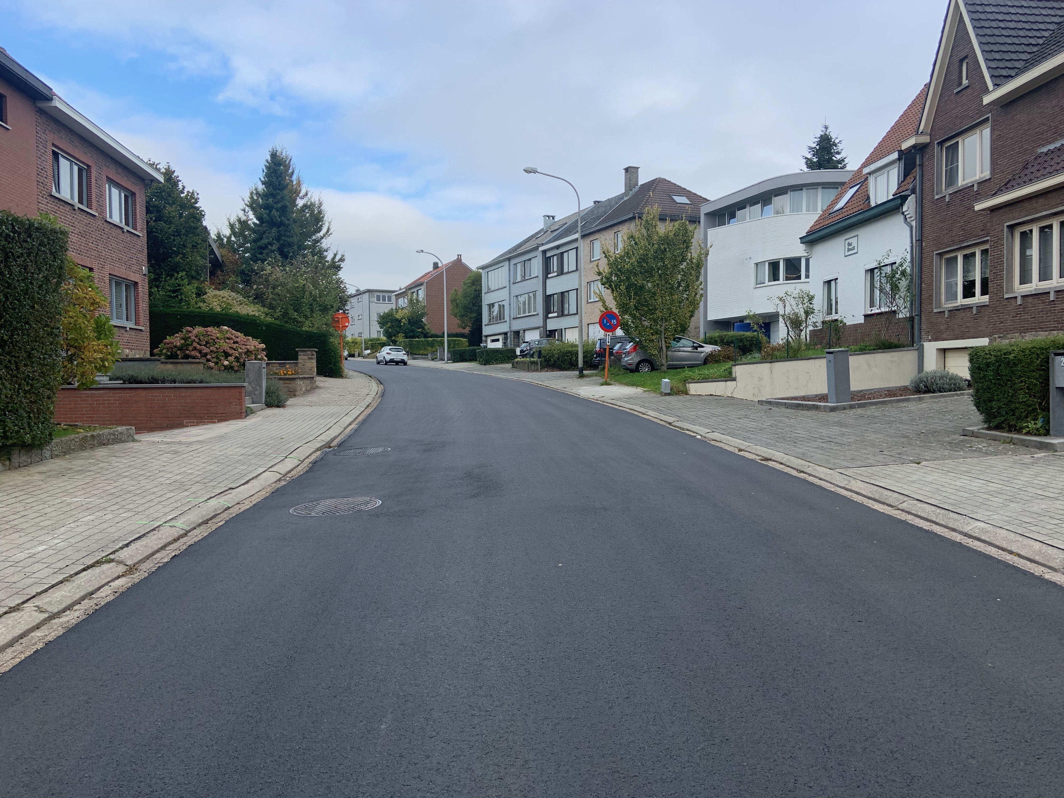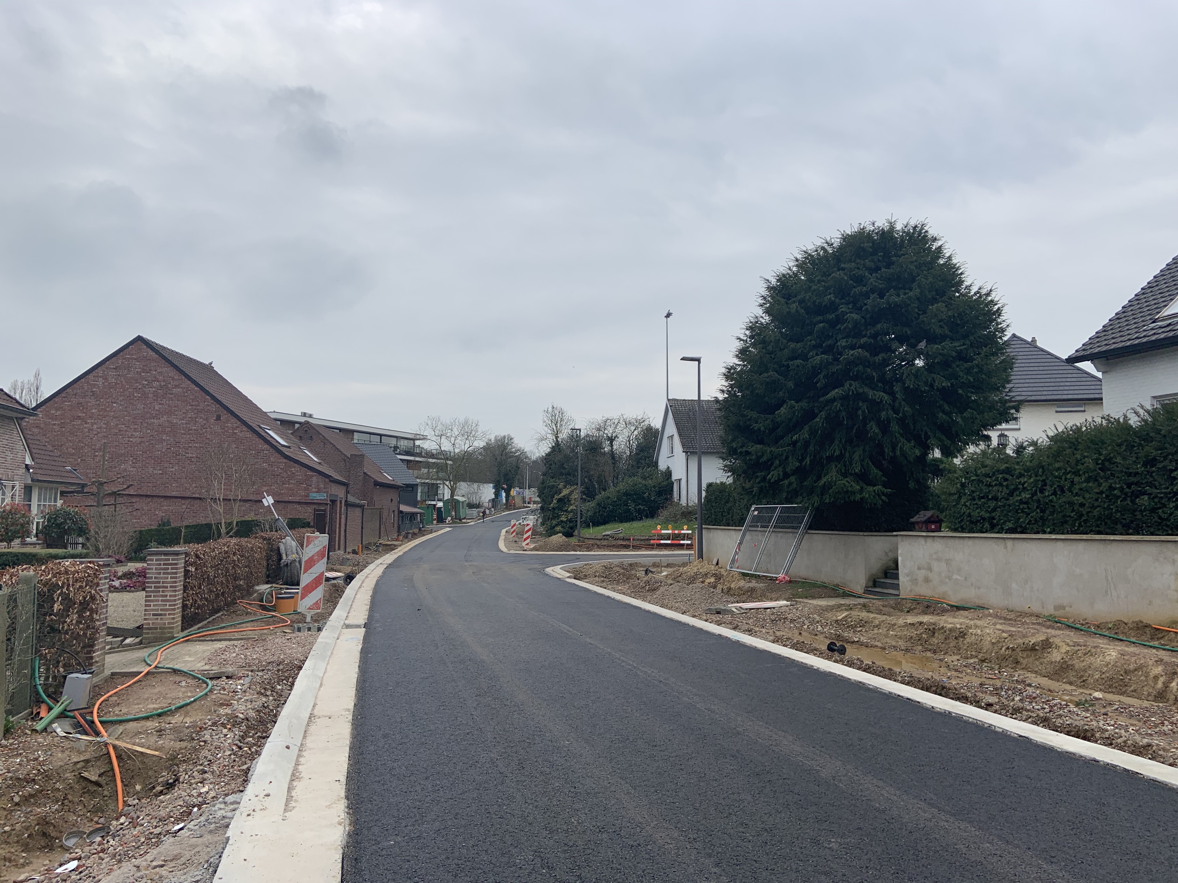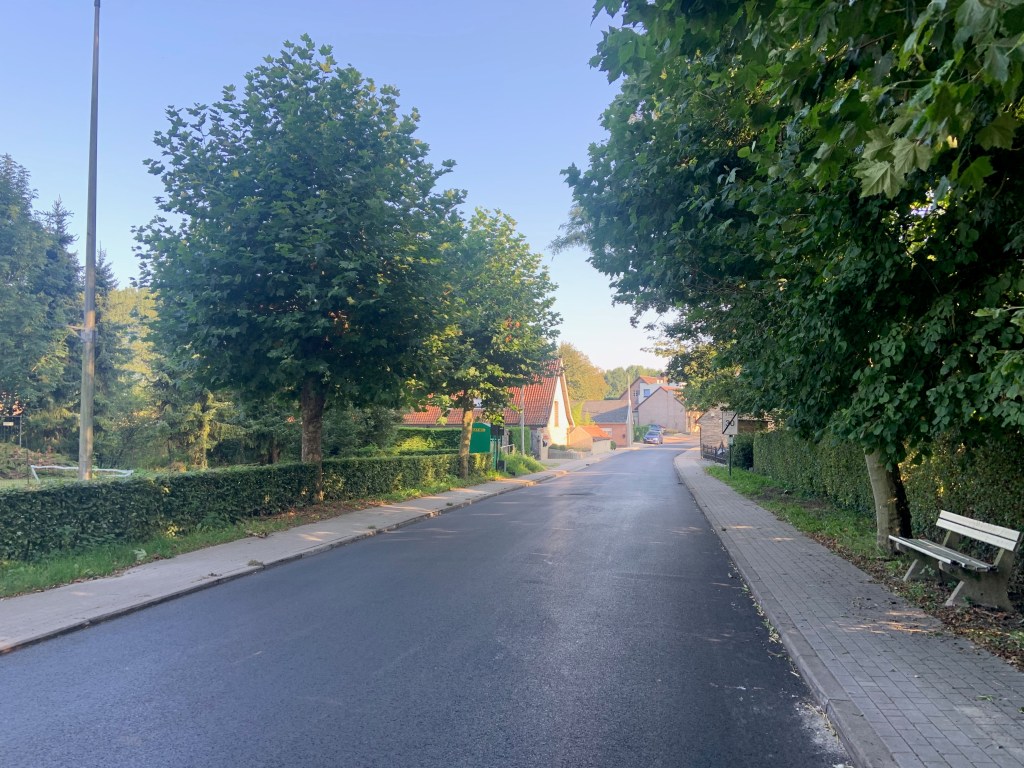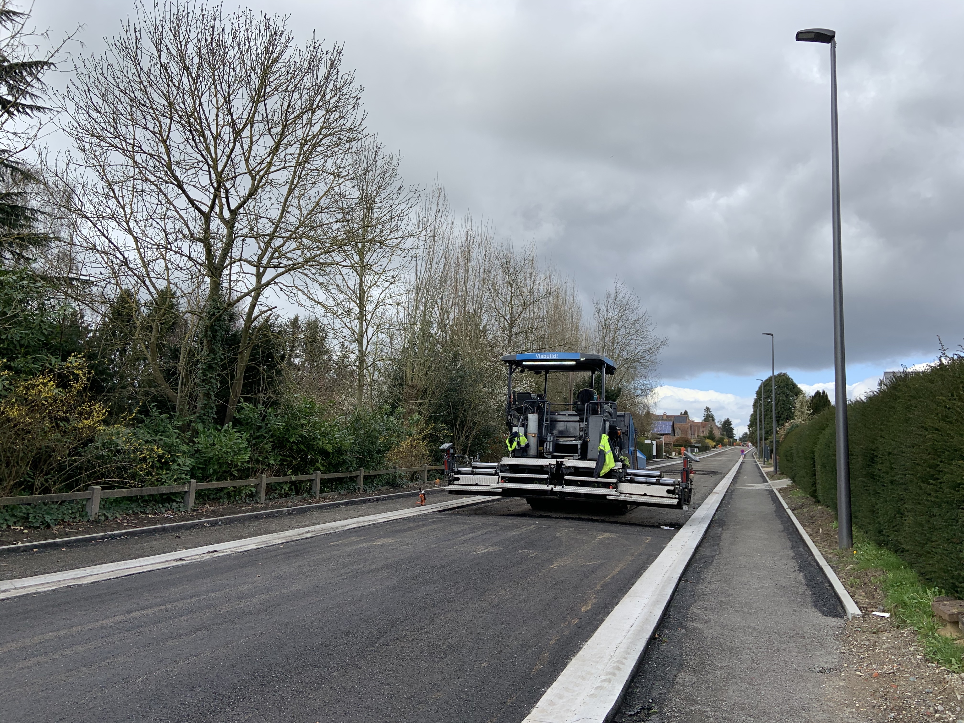 De Ternatstraat in Bodegem werd volledig vernieuwd: nieuwe stevige fundering, nieuwe rioleringen, 3 lagen asfalt, fietspaden, verhoogde busperrons,…