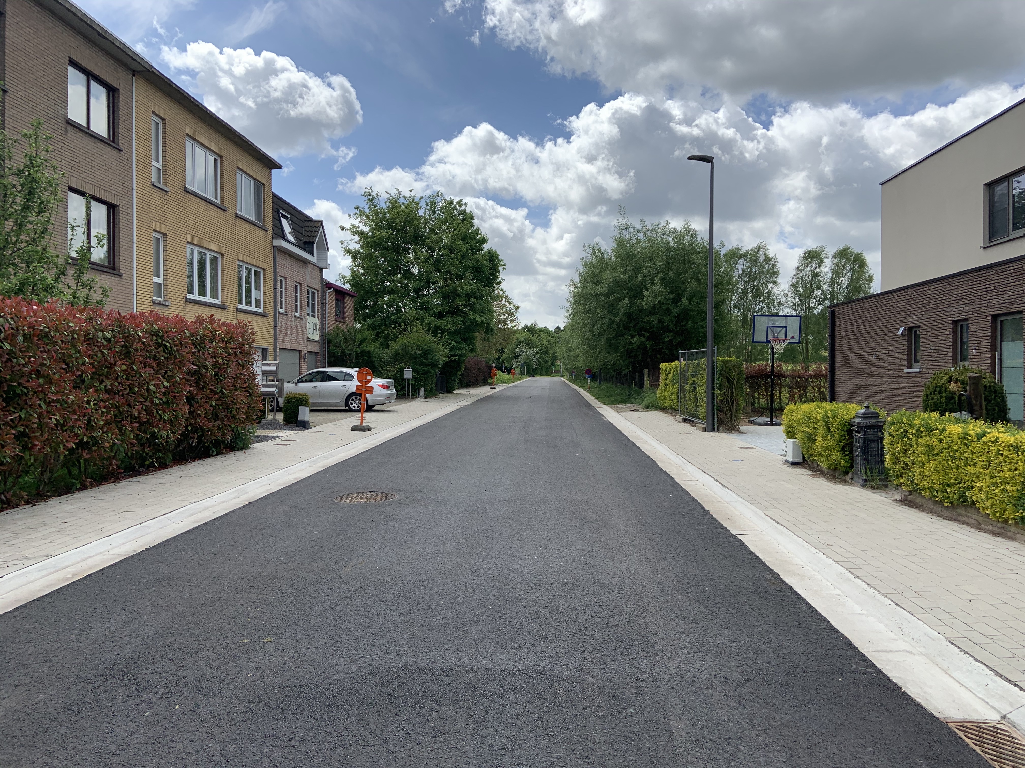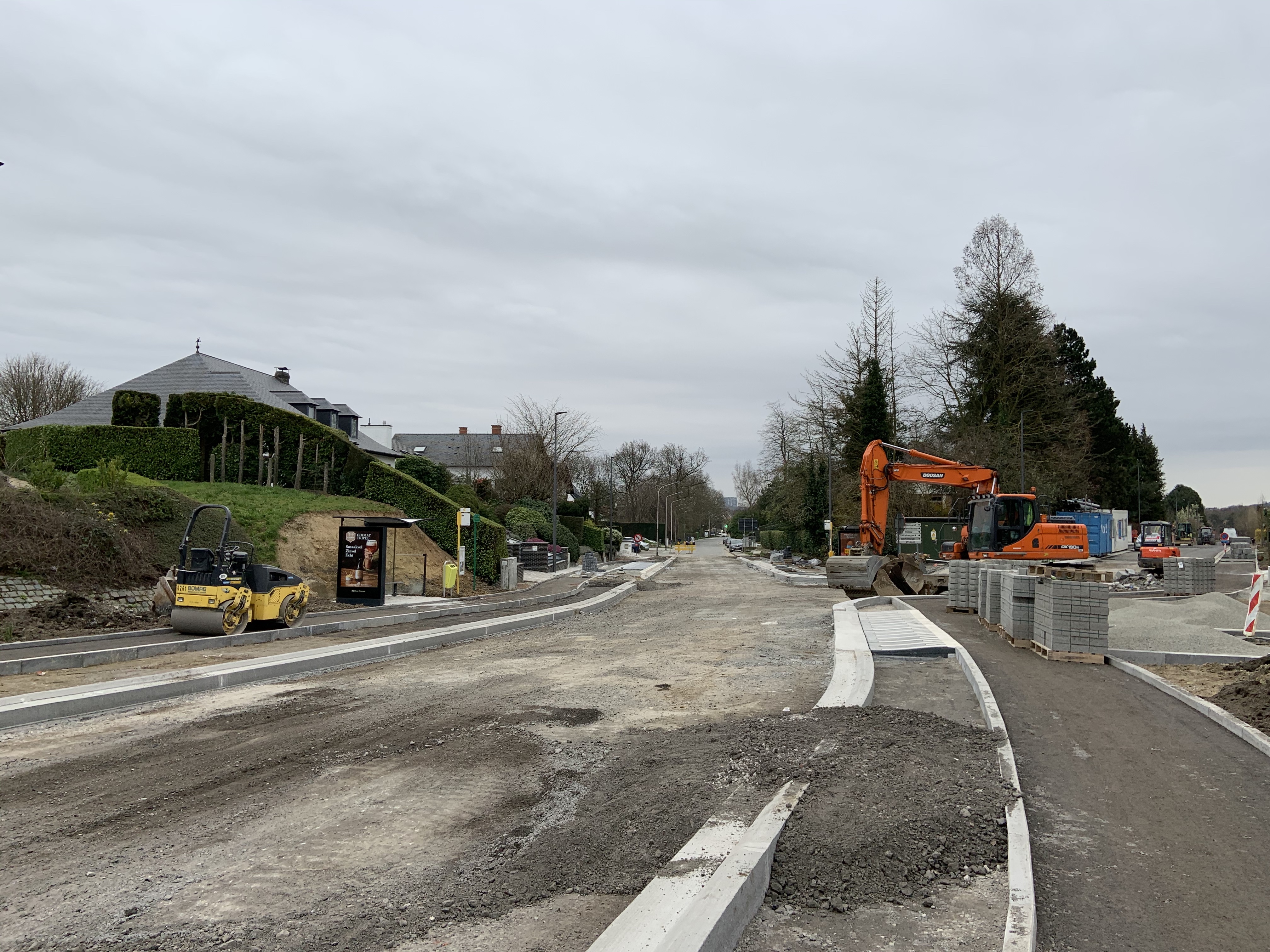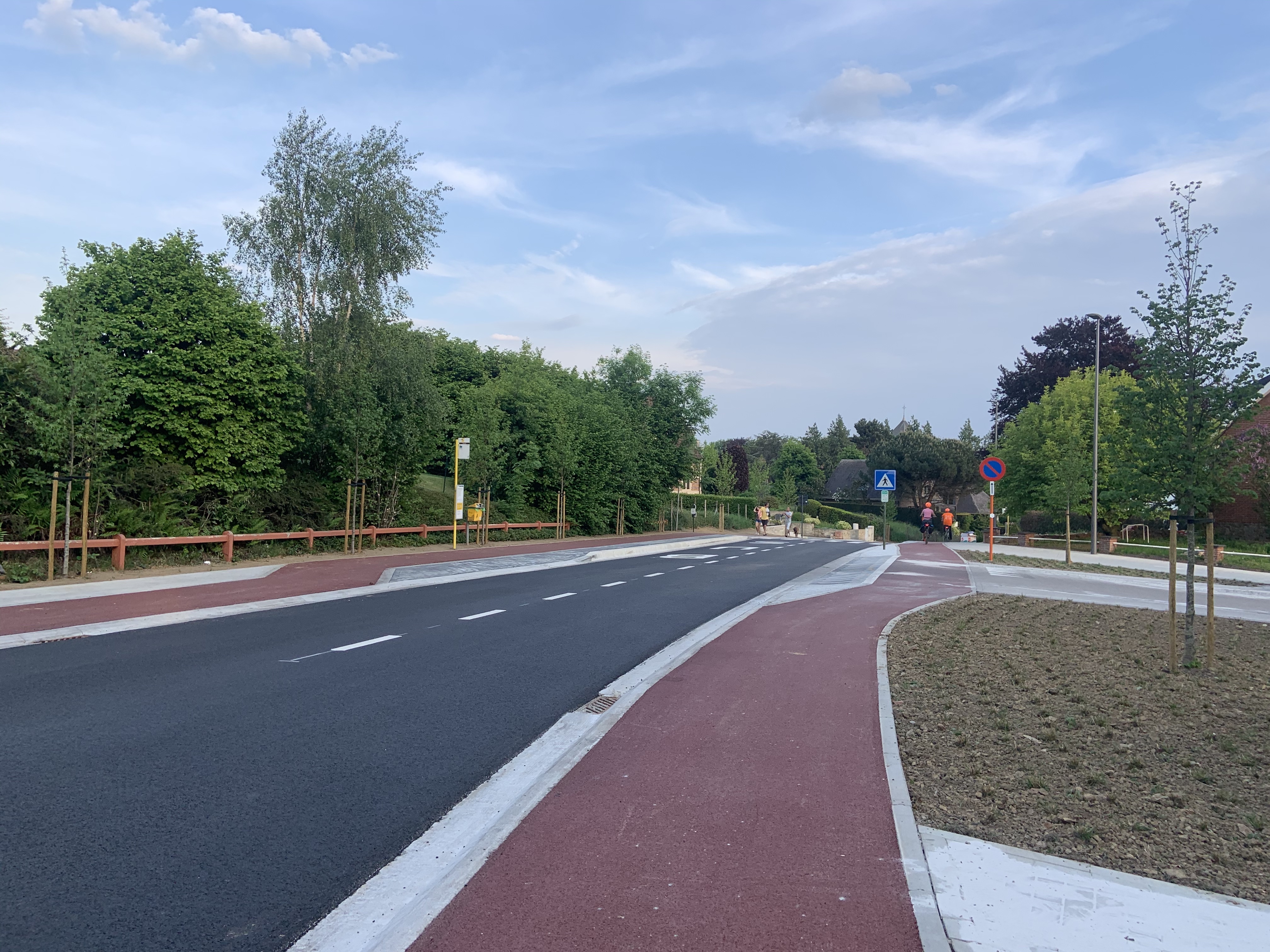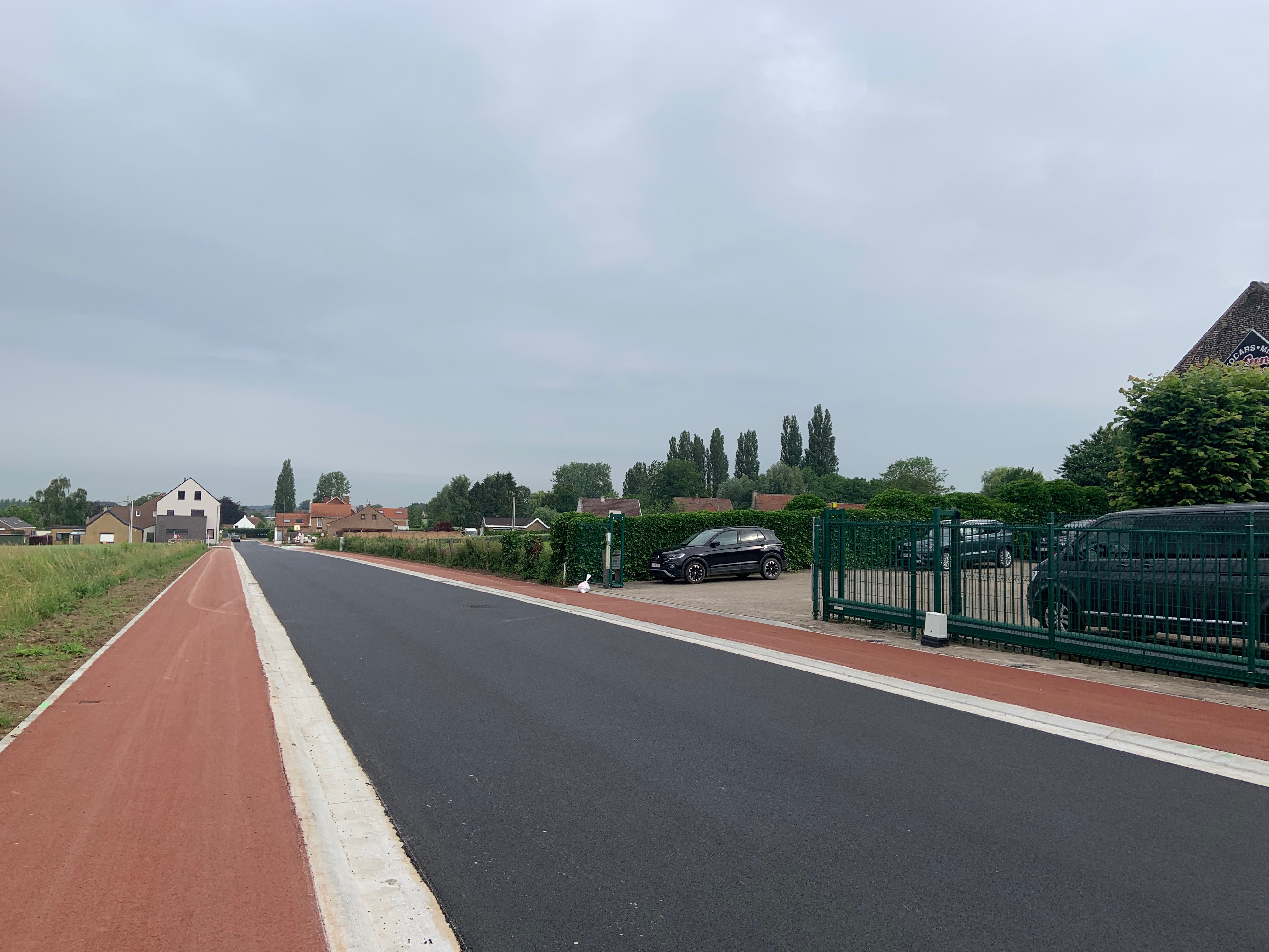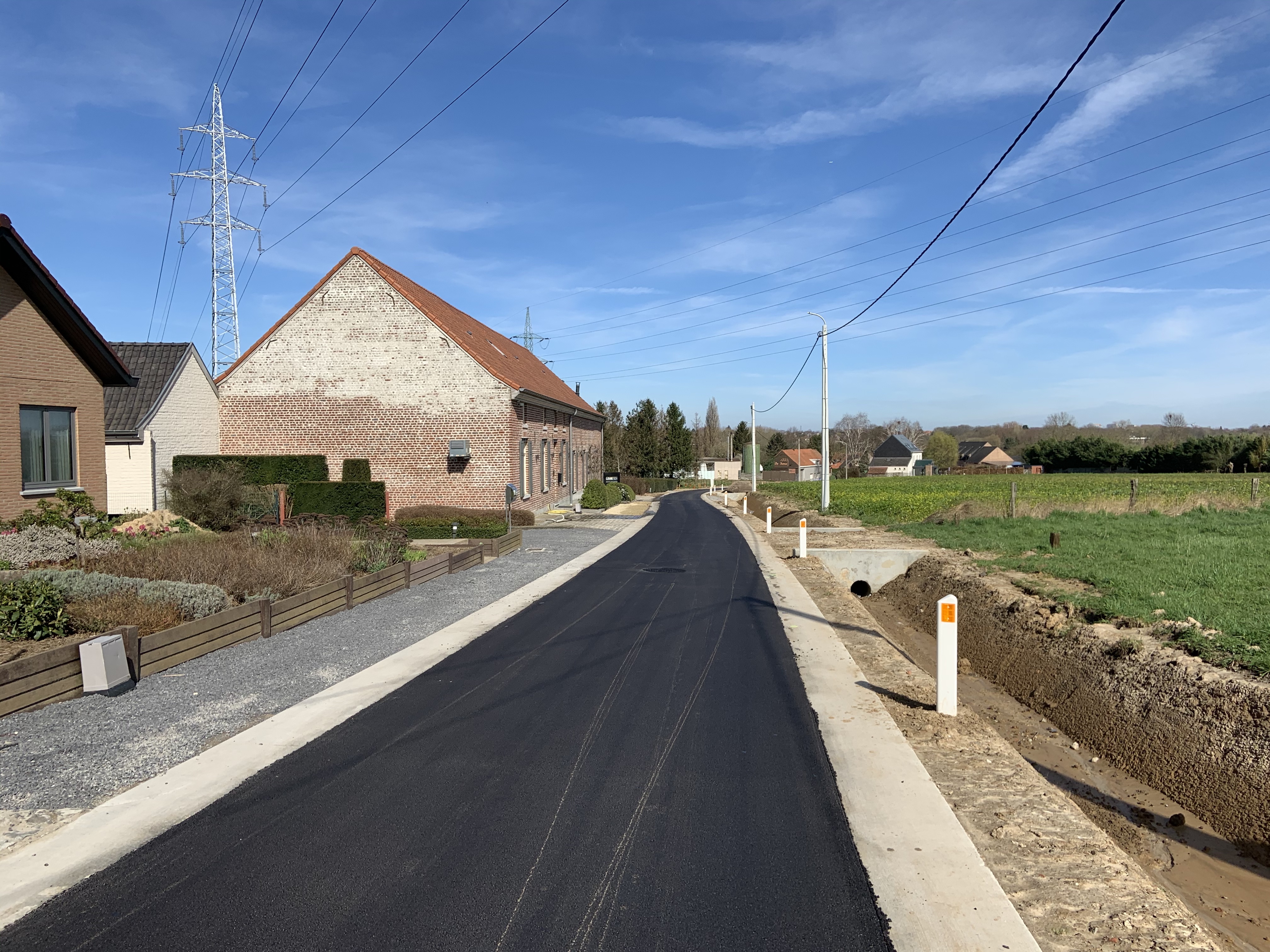 De Ternatstraat in Bodegem werd volledig vernieuwd: nieuwe stevige fundering, nieuwe rioleringen, 3 lagen asfalt, fietspaden, verhoogde busperrons,…