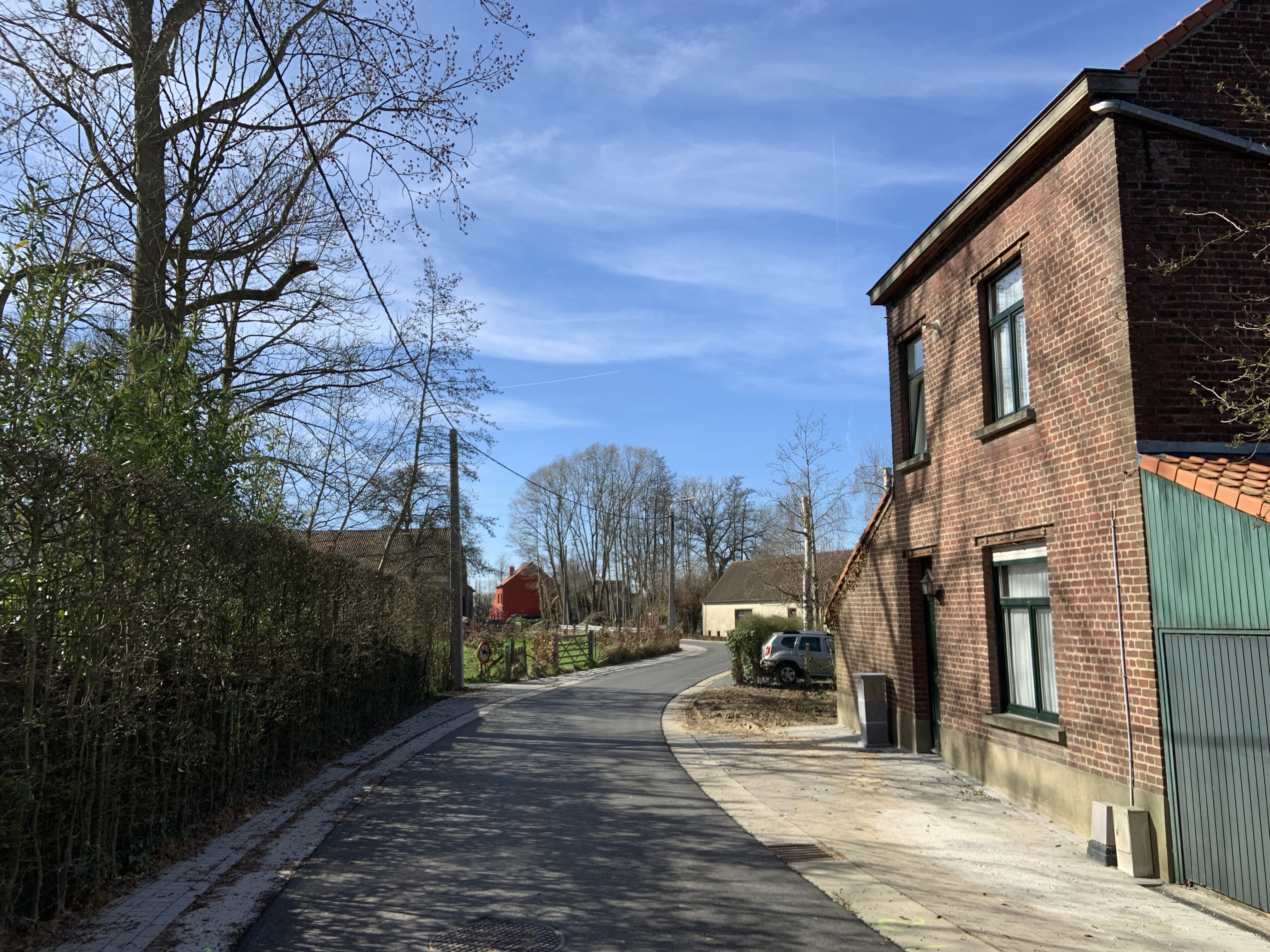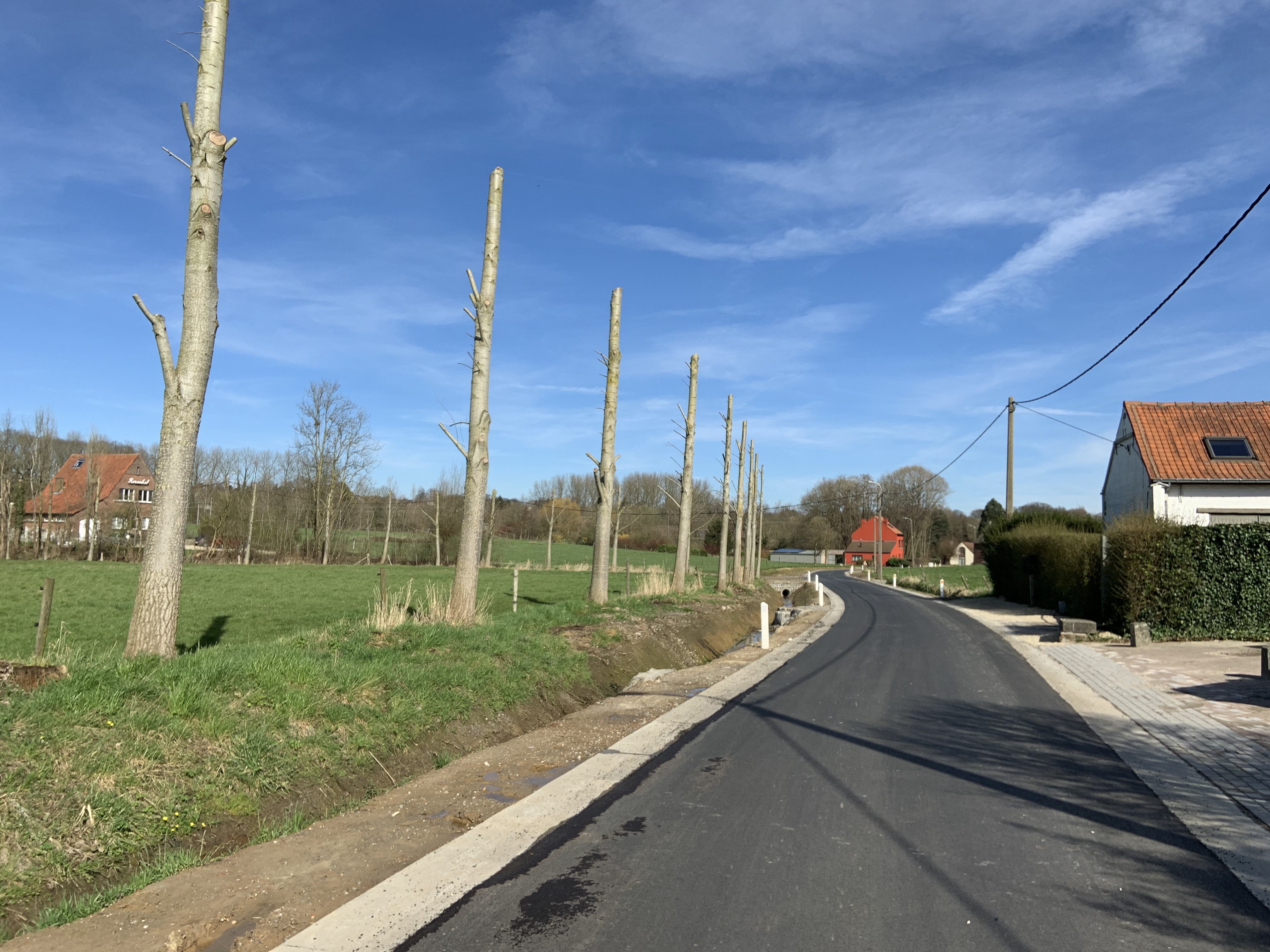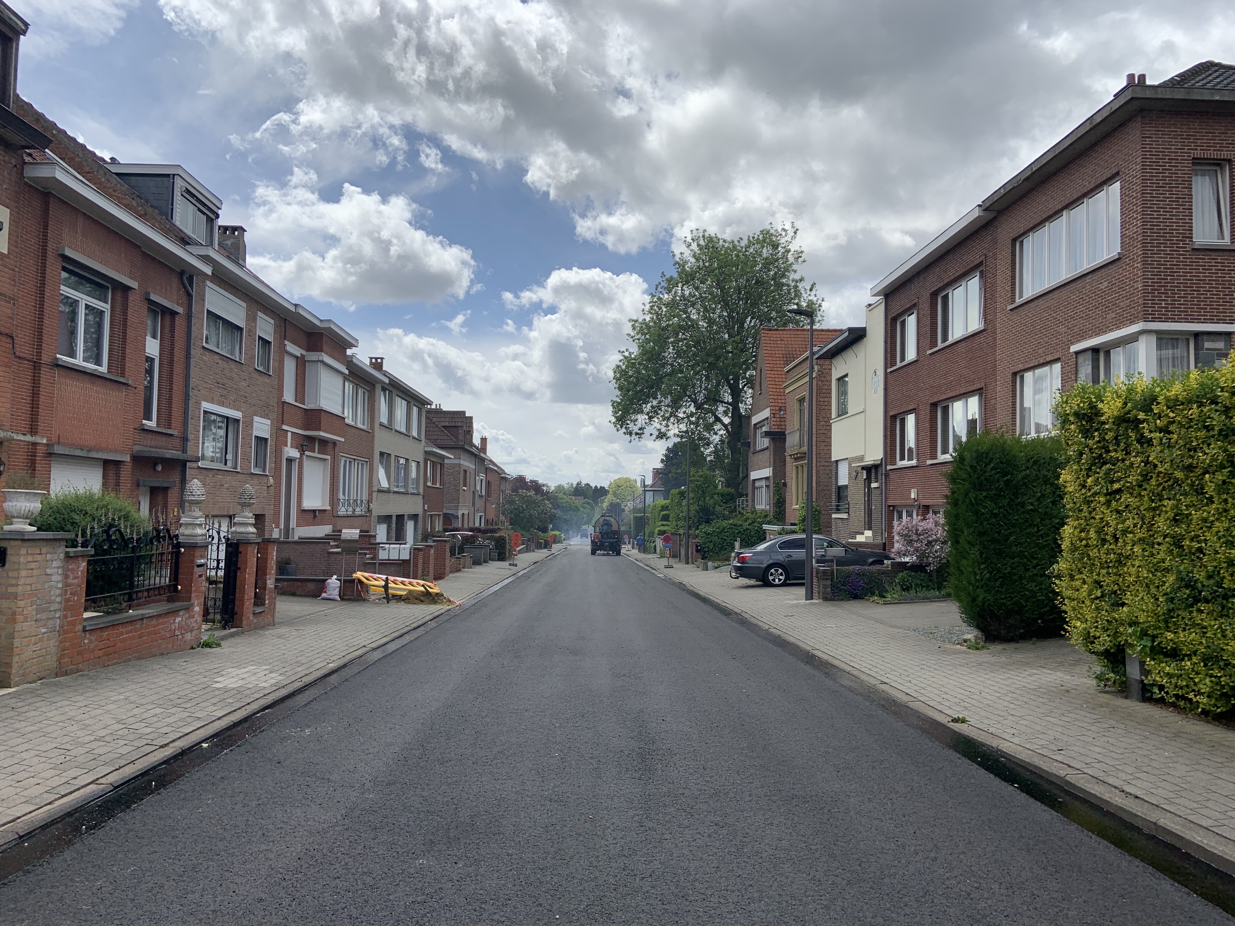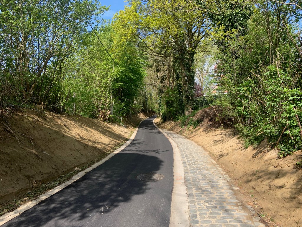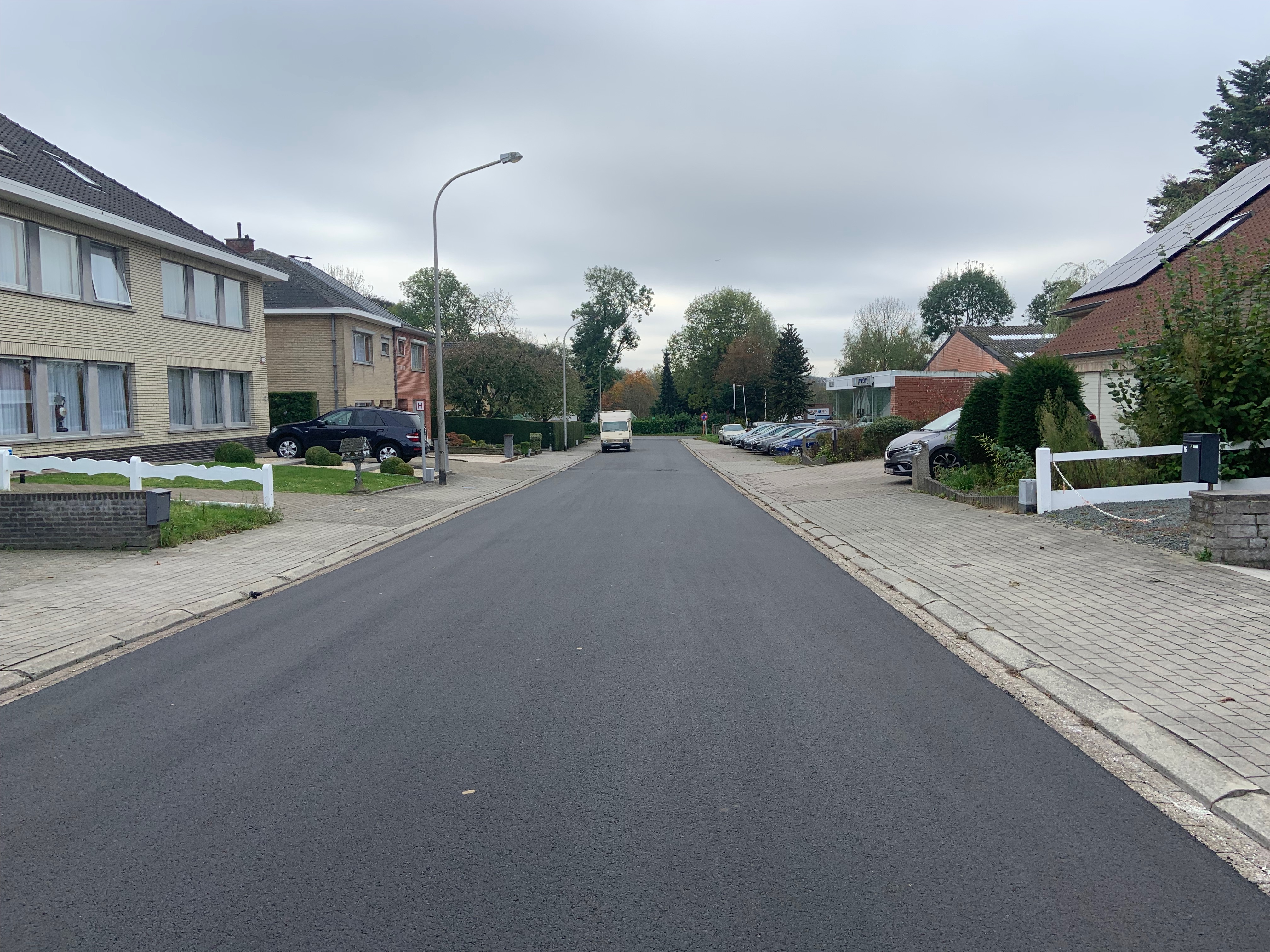 De Ternatstraat in Bodegem werd volledig vernieuwd: nieuwe stevige fundering, nieuwe rioleringen, 3 lagen asfalt, fietspaden, verhoogde busperrons,…