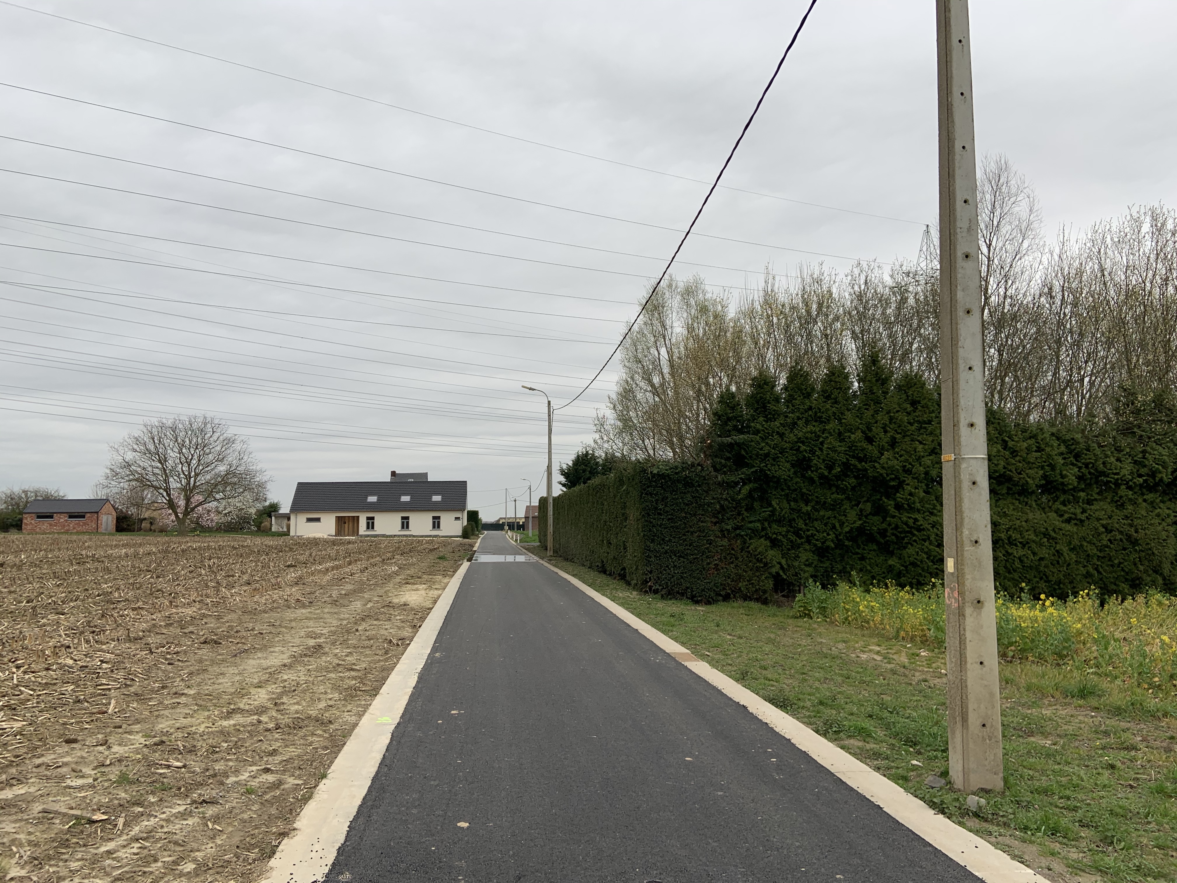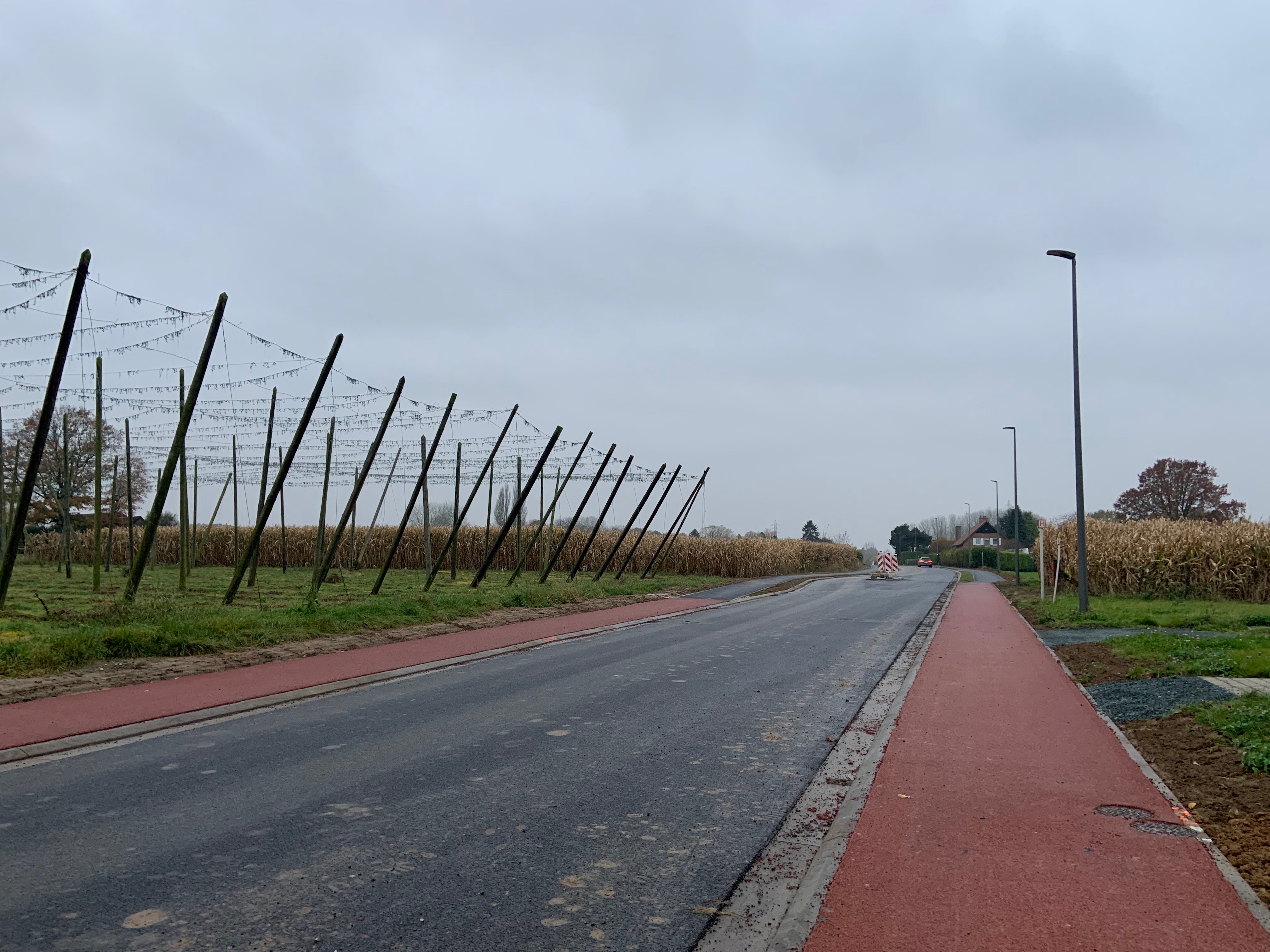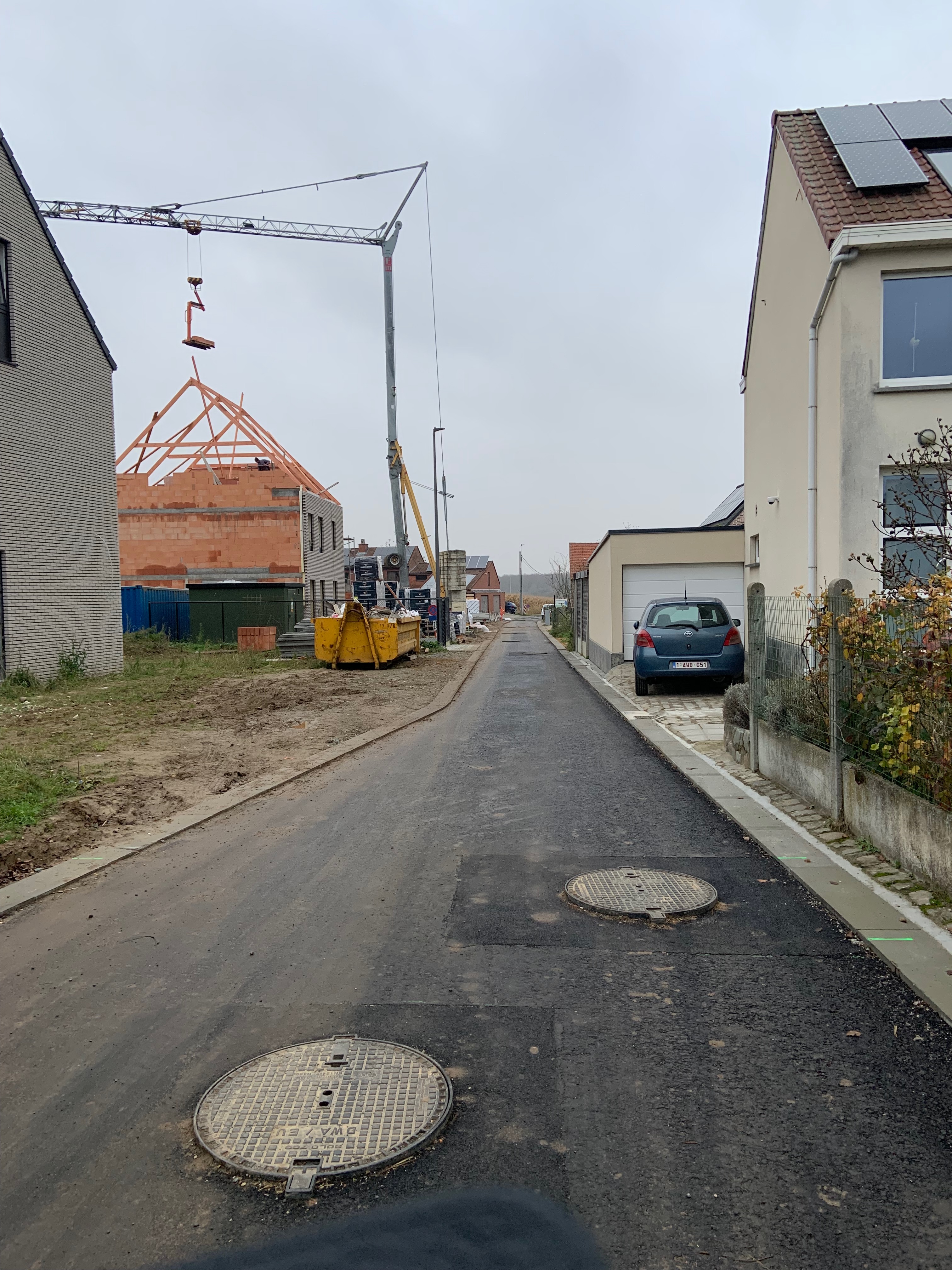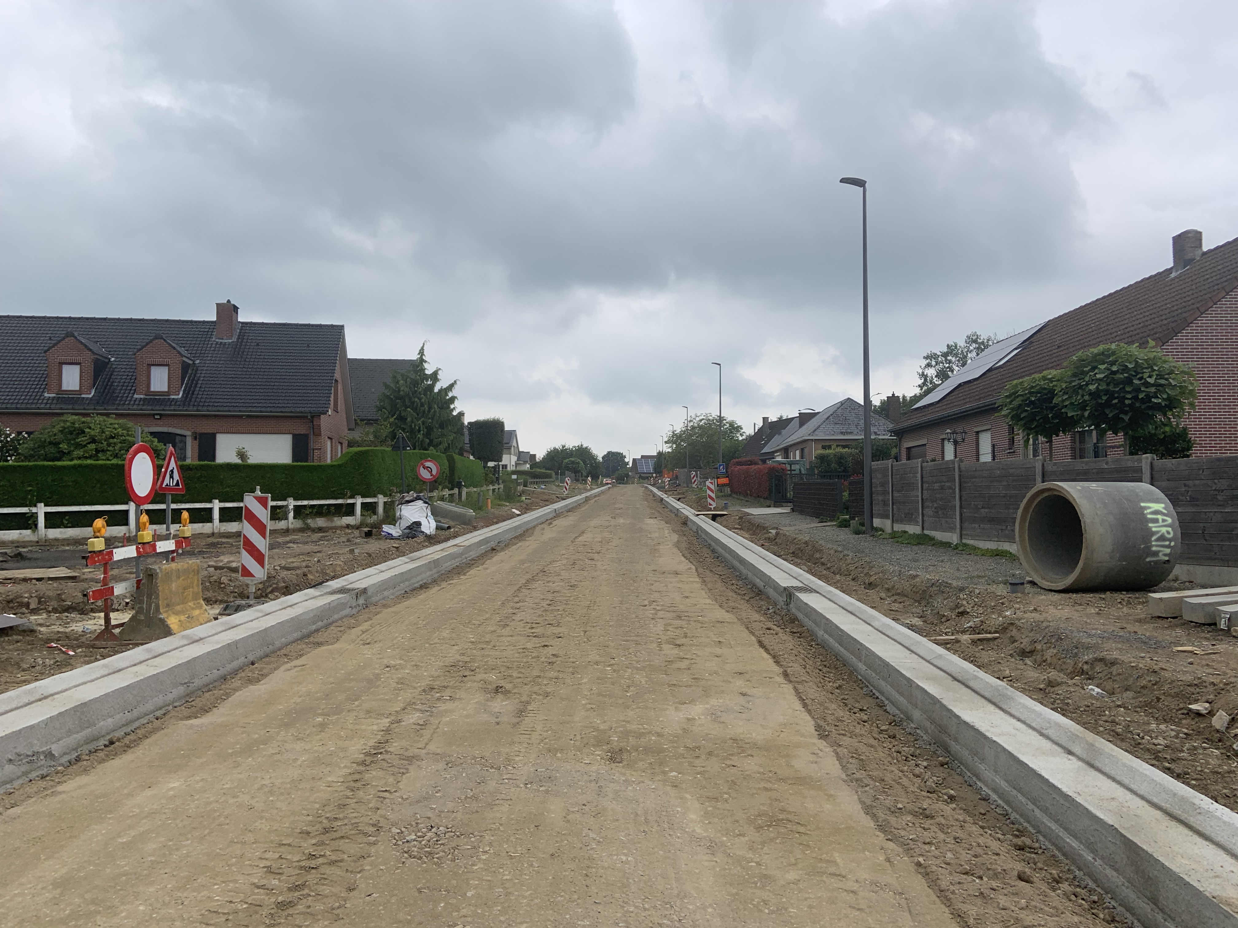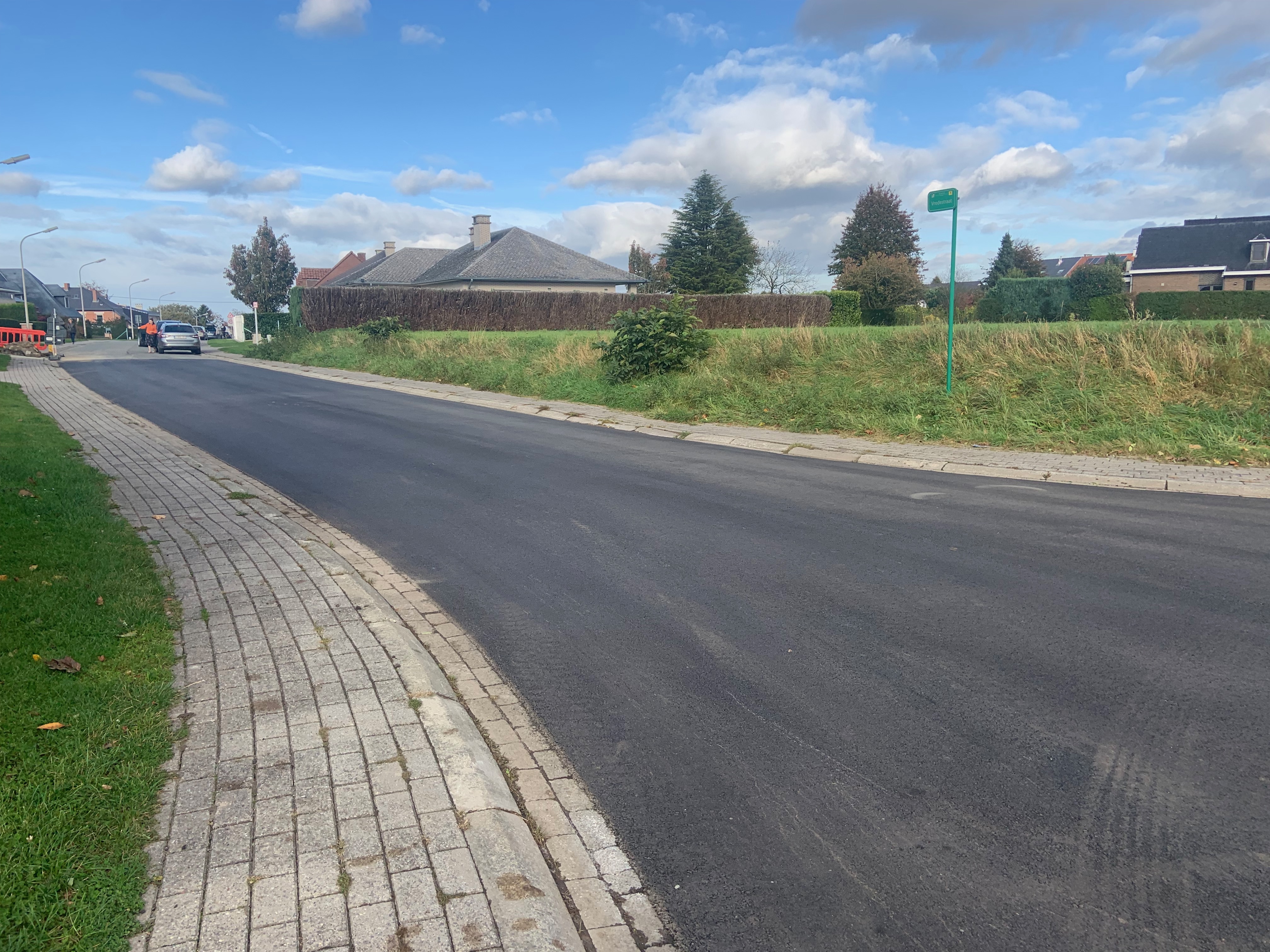 De Ternatstraat in Bodegem werd volledig vernieuwd: nieuwe stevige fundering, nieuwe rioleringen, 3 lagen asfalt, fietspaden, verhoogde busperrons,…