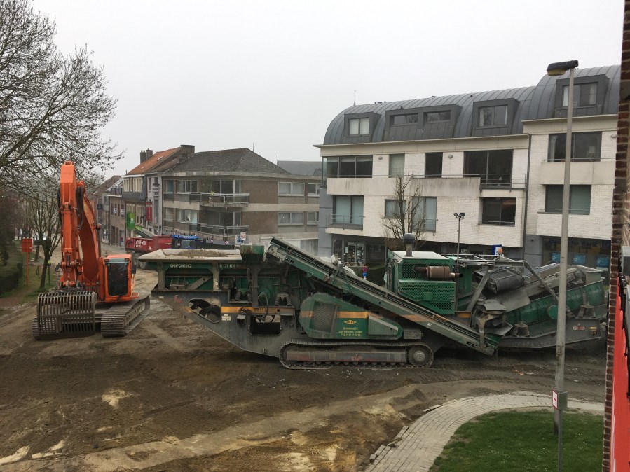 Opbraak en onmiddellijke verwerking oude klinkers Kasteelstraat